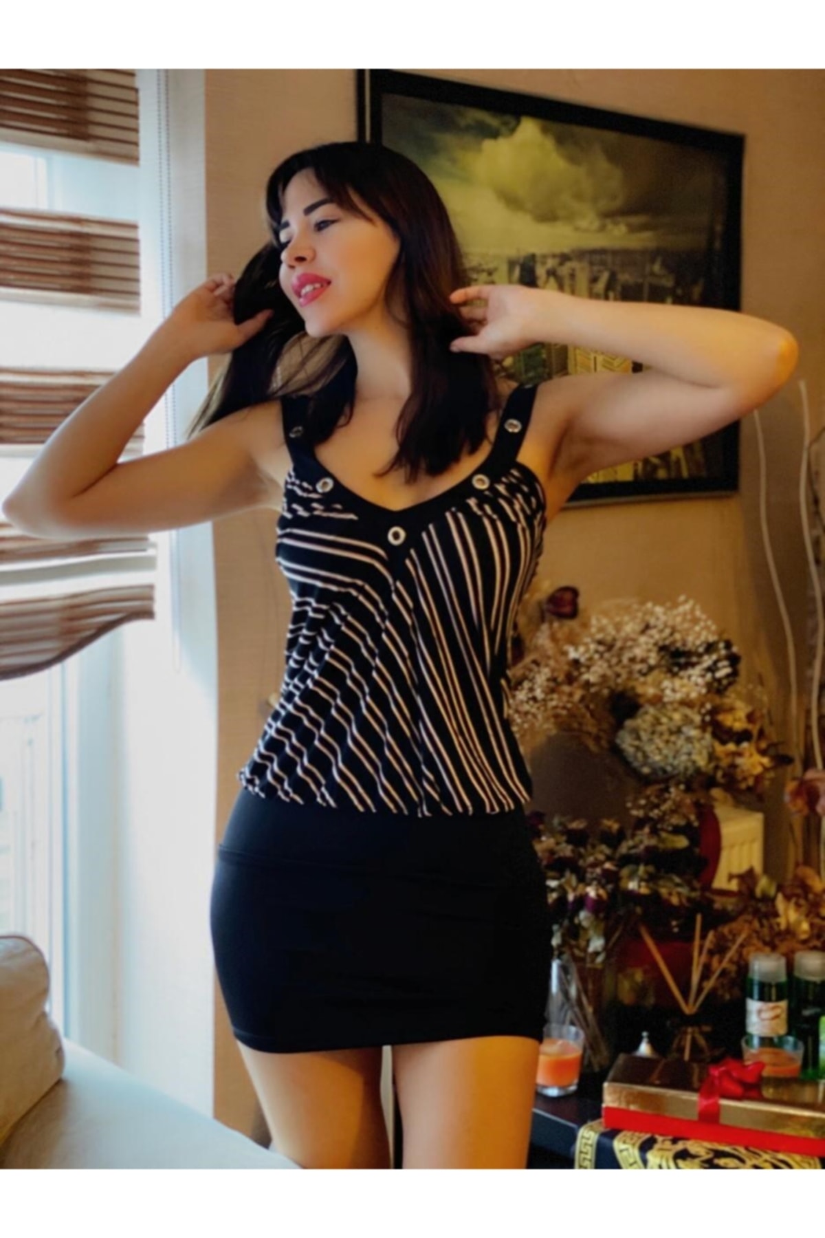 Göğsü Deri Detaylı Boyundan Bağlı Kadın Mini Elbise Göğsü Deri Detaylı Boyundan Bağlı Kadın Mini Elbise PRA-5616544-819774 L
