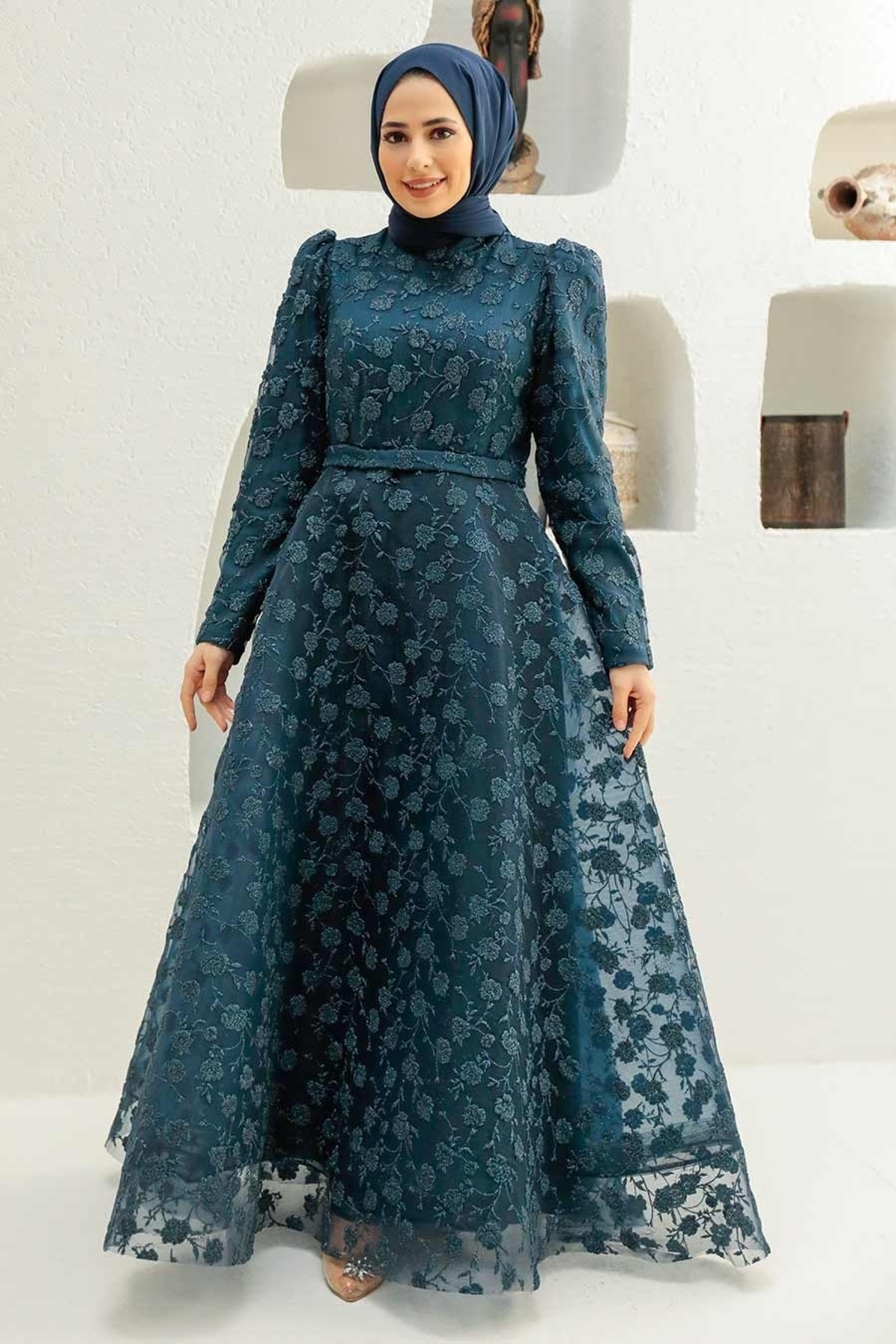 Dantelli Kahverengi Tesettür Abiye Elbise 22421KH Dantelli Kahverengi Tesettür Abiye Elbise 22421KH EGS-22421 44