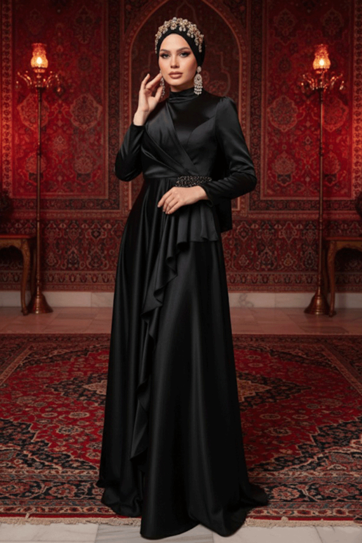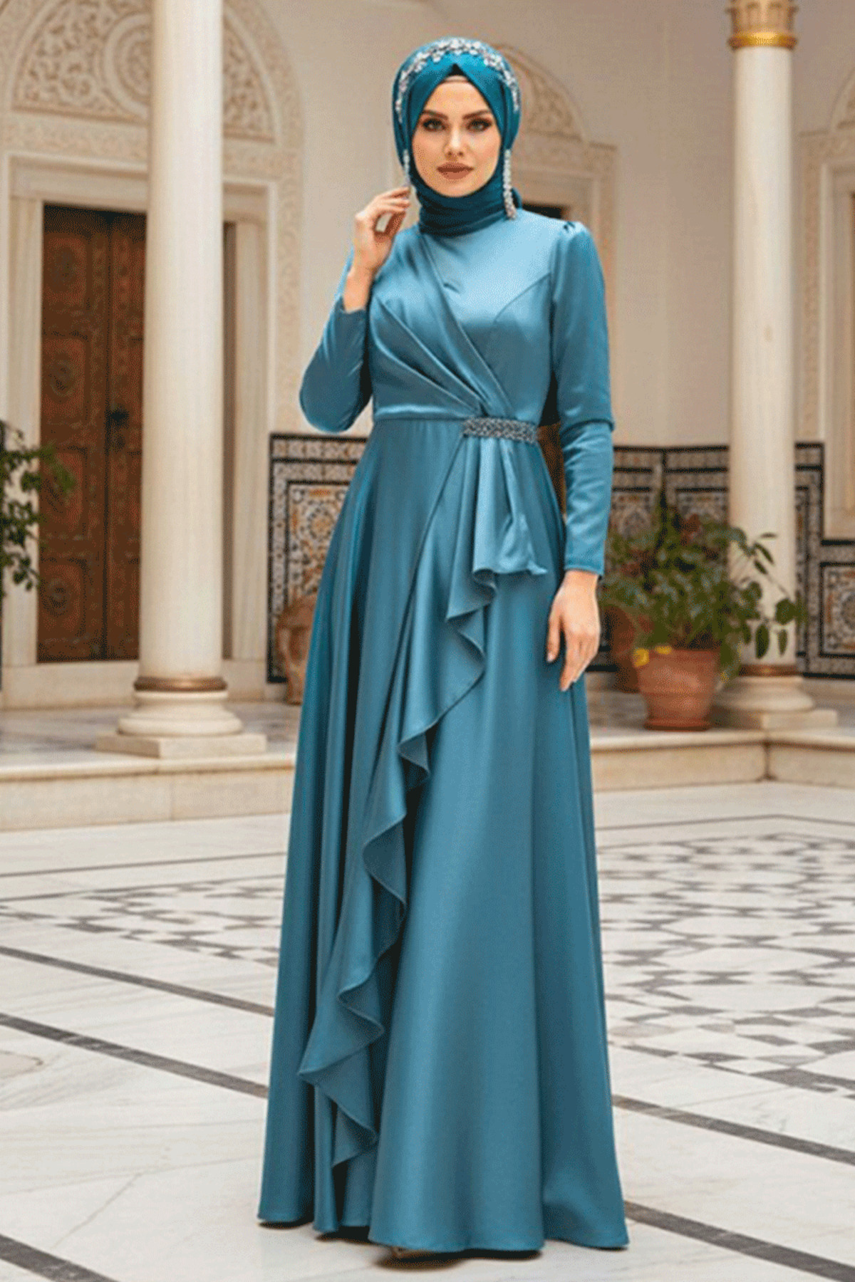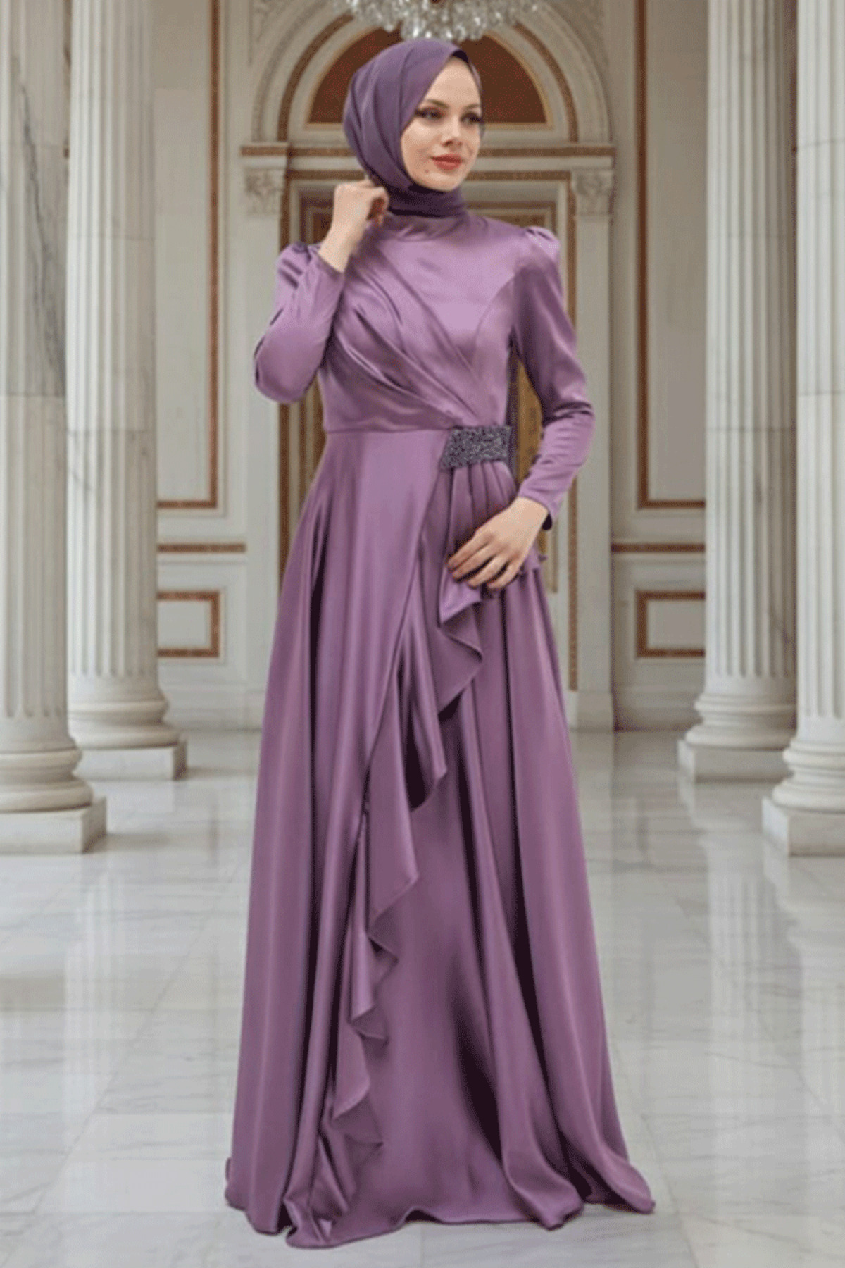 Volanlı Vizon Tesettür Abiye Elbise 22431V Volanlı Vizon Tesettür Abiye Elbise 22431V EGS-22431 46