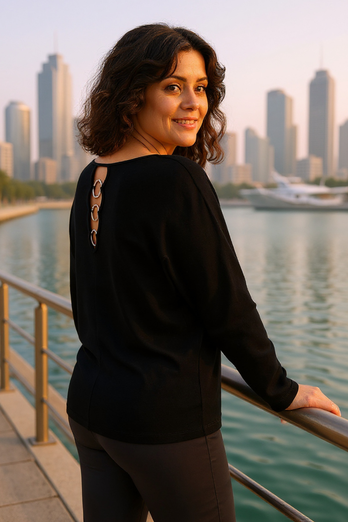 Kadın Büyük Beden Siyah Deri Garnili Asimetrik Yaka Siyah Bluz Kadın Büyük Beden Siyah Deri Garnili Asimetrik Yaka Siyah Bluz 18961 6XL
