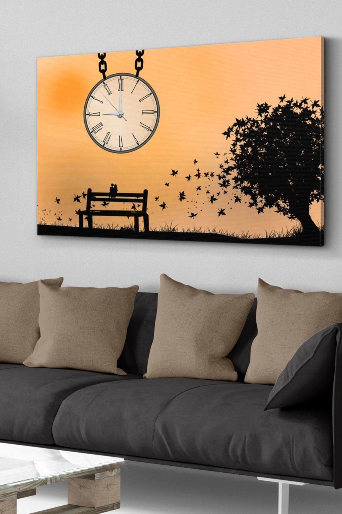 Kalp Ağaçlar Saatli Kanvas - Canvas Tablo Kalp Ağaçlar Saatli Kanvas - Canvas Tablo EV-SAATKVS-077 100 x 60