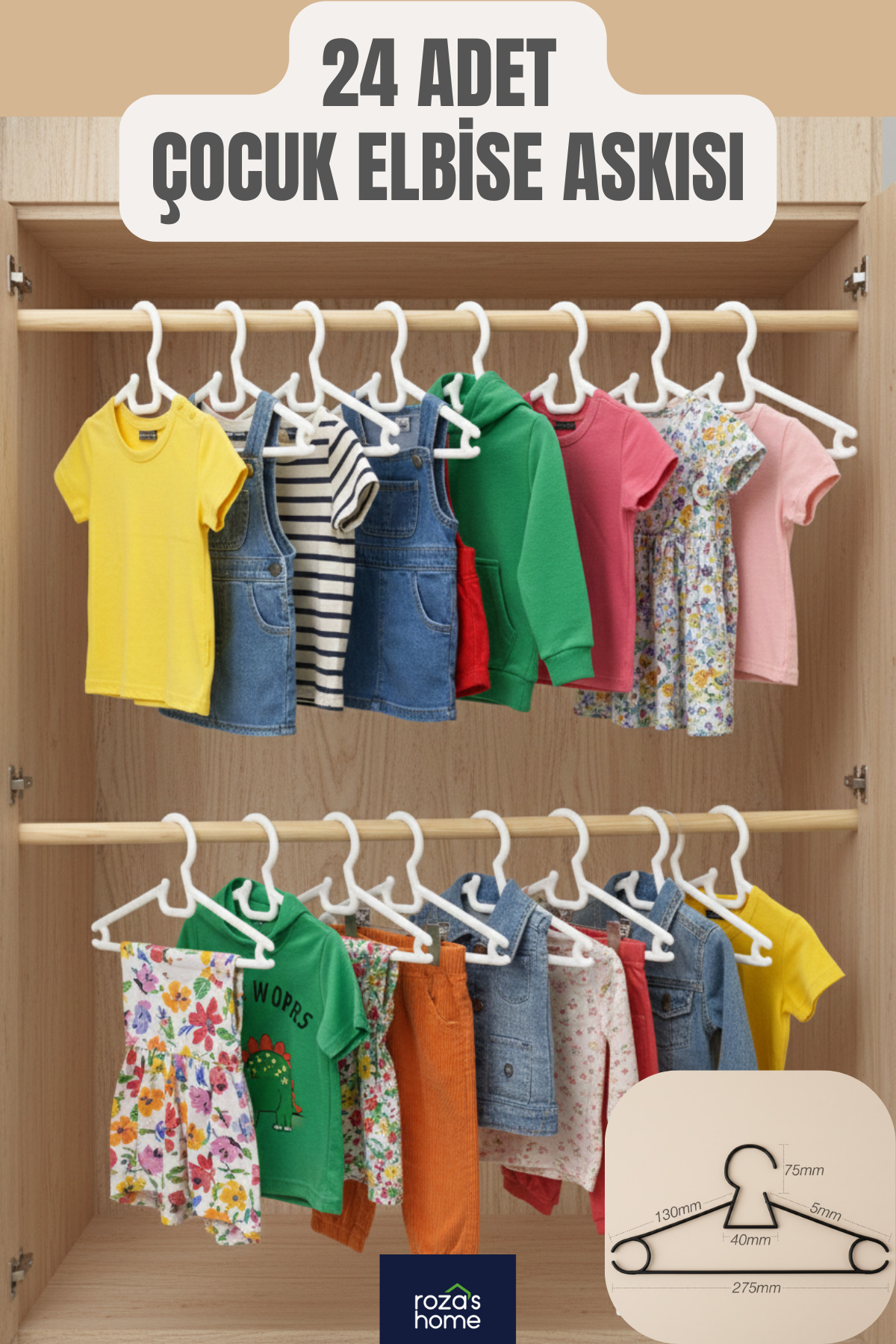12'li Çocuk Elbise Askısı Bebek Elbise Askısı Lily Askı 12'li Çocuk Elbise Askısı Bebek Elbise Askısı Lily Askı G-93 تک سایز