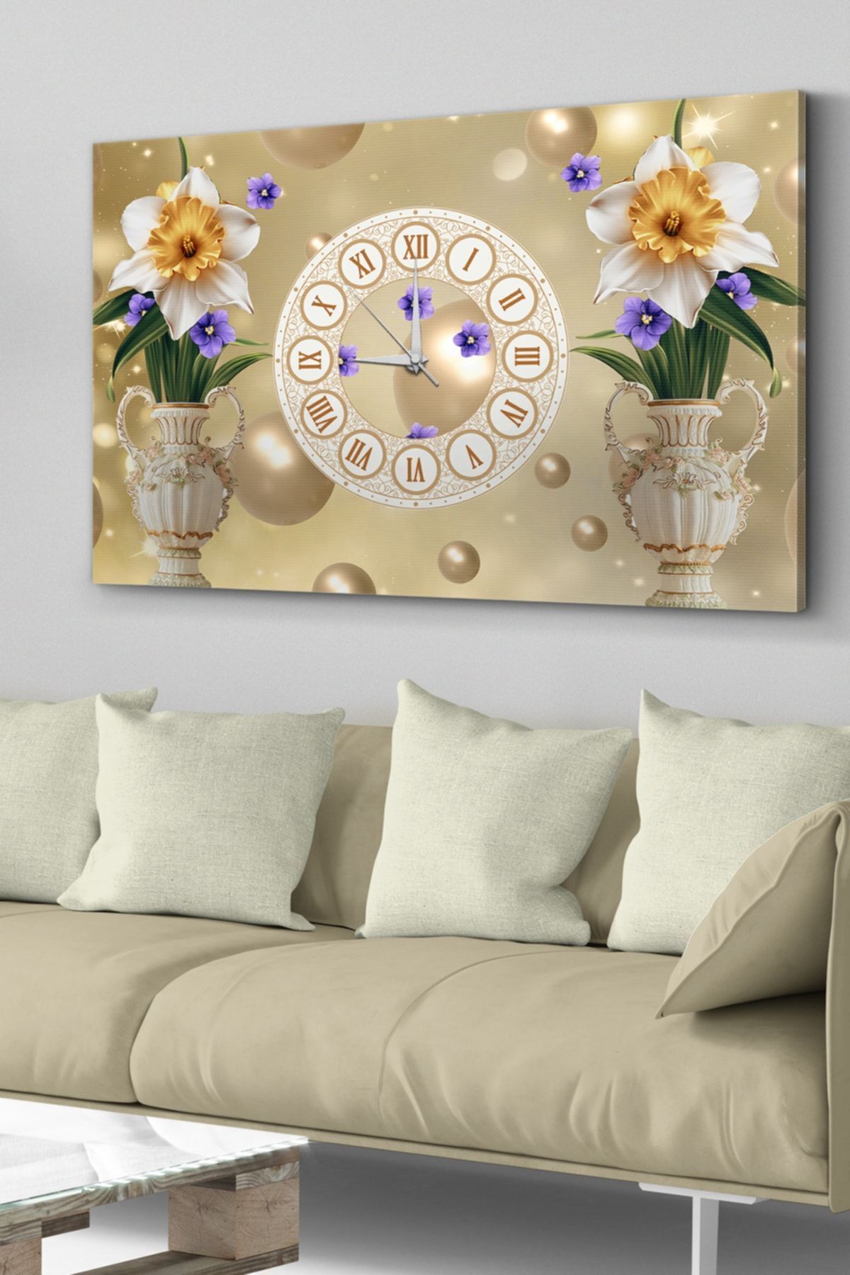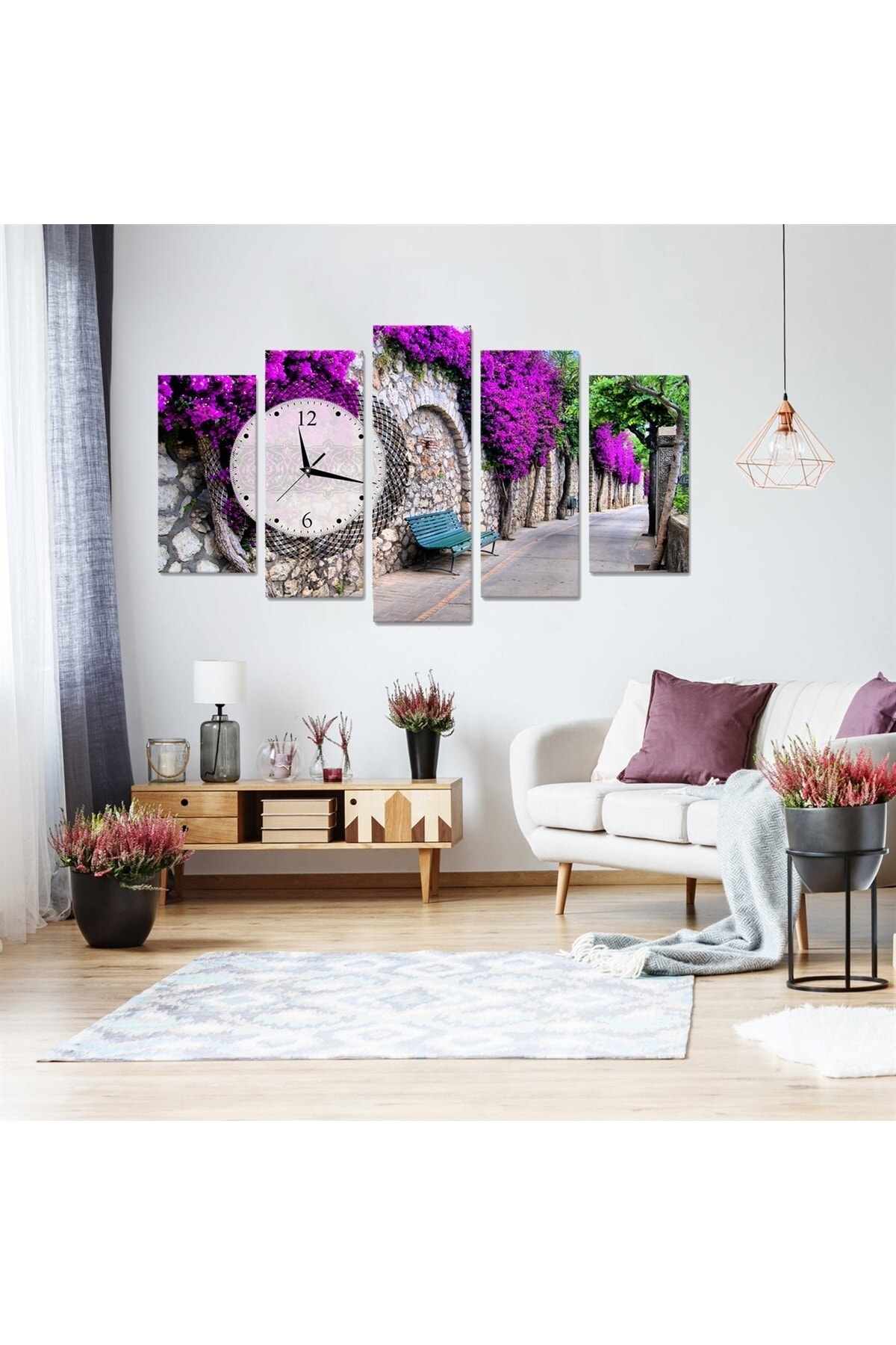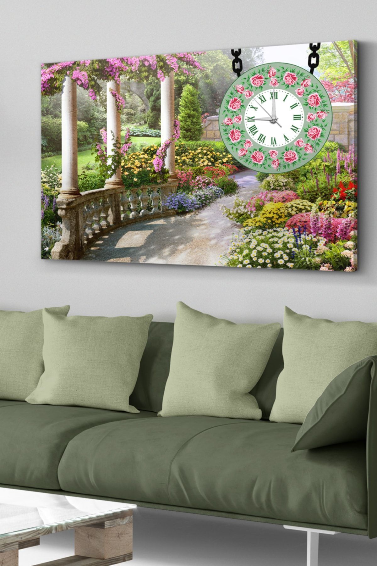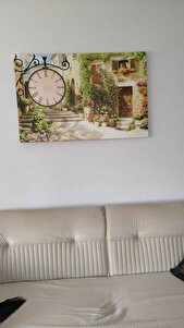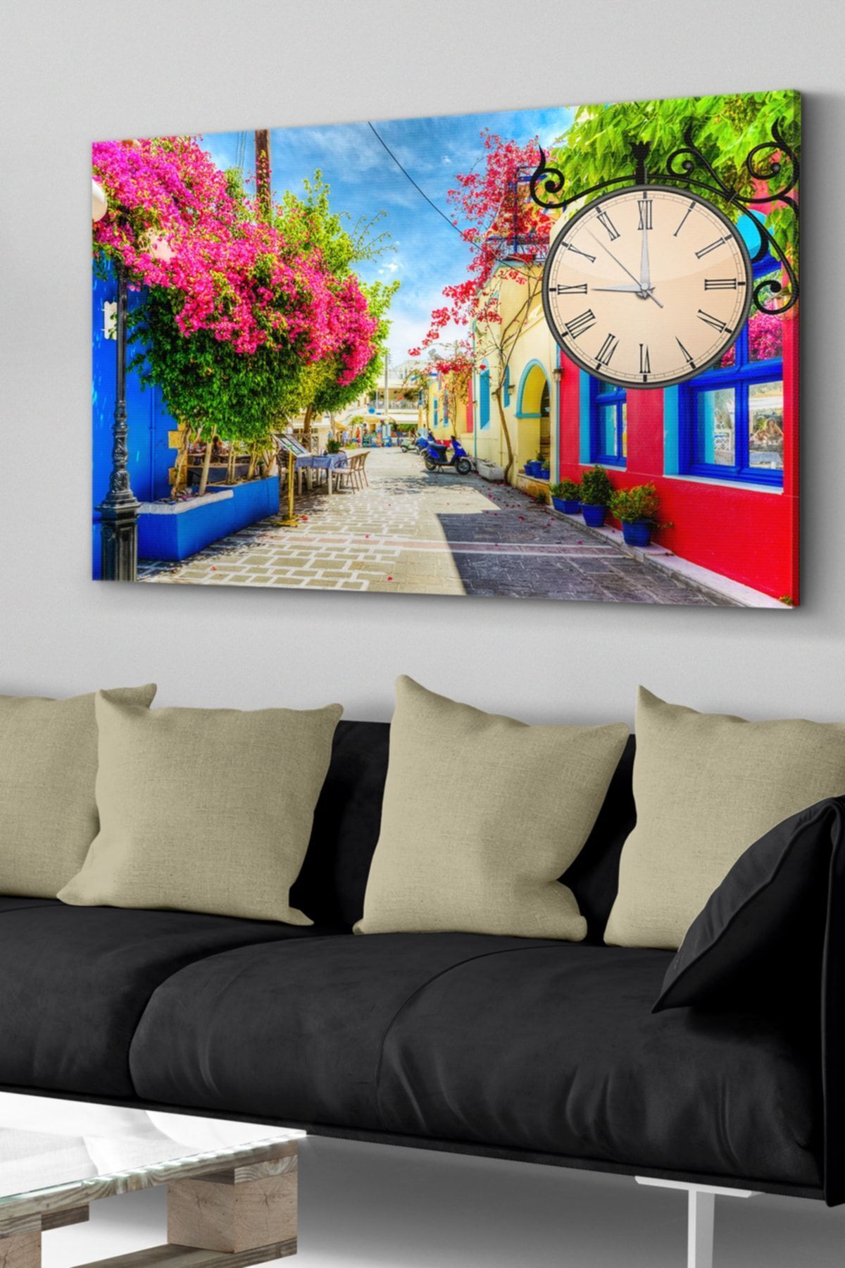 Çiçekli Sokaklar Saatli Kanvas - Canvas Tablo Çiçekli Sokaklar Saatli Kanvas - Canvas Tablo EV-SAATKVS-052 100 x 60