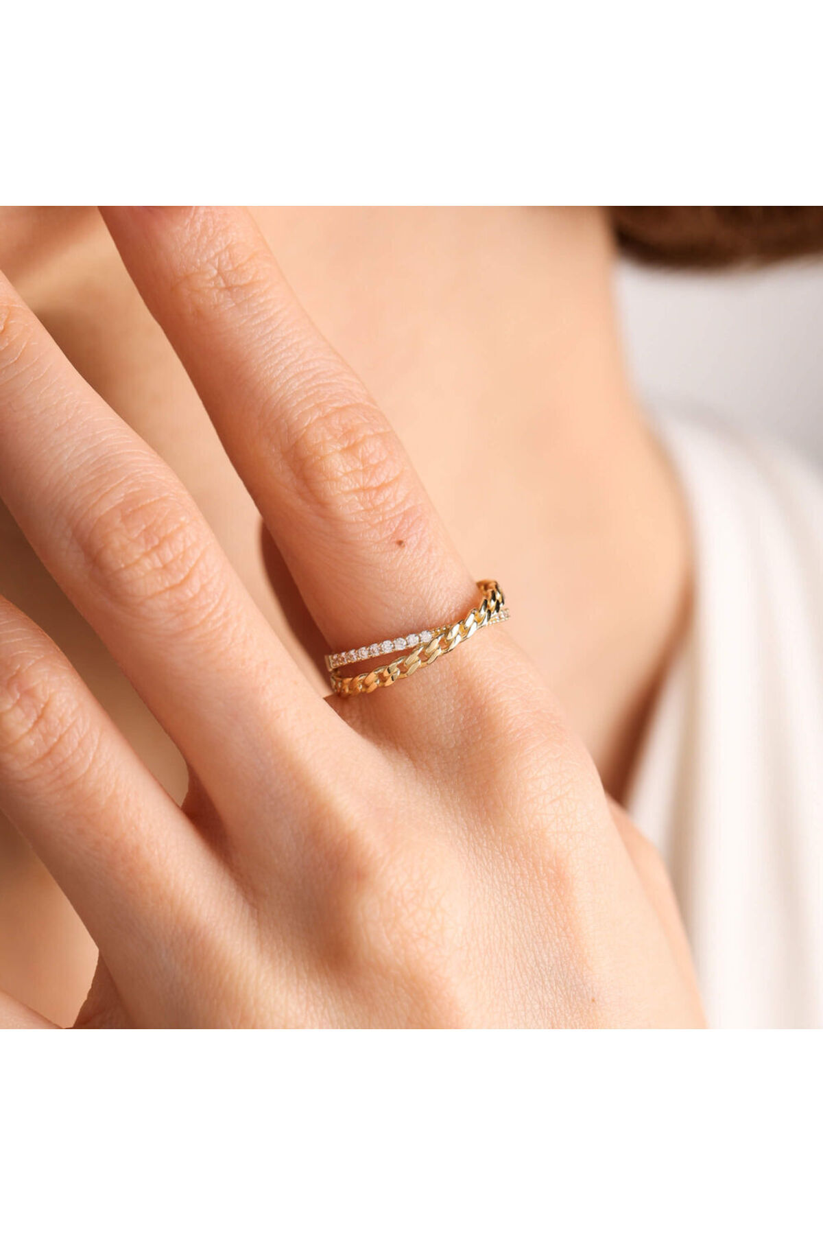 Altın Gurmet Yüzük 14k Çift Sıra Altın Gurmet Yüzük 14k Çift Sıra T10285 6