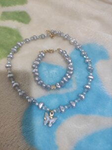 Mavi Kelebek Uçlu Barok Incili Kolye Mavi Kelebek Uçlu Barok Incili Kolye FMA1794 40 cm