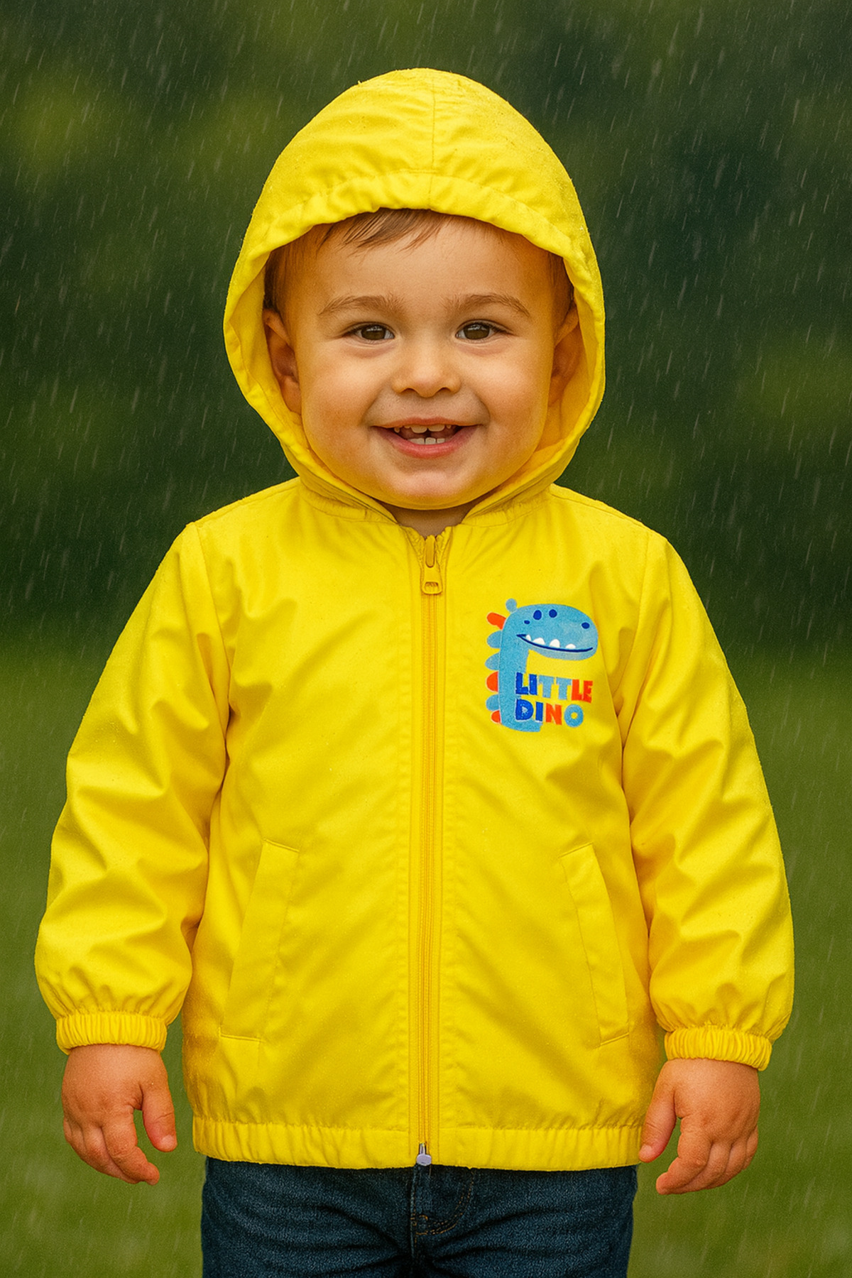 Dinozor Desenli Kapüşonlu Erkek Çocuk Sarı Yağmurluk Dinozor Desenli Kapüşonlu Erkek Çocuk Sarı Yağmurluk MB-01062 1-2 Yaş