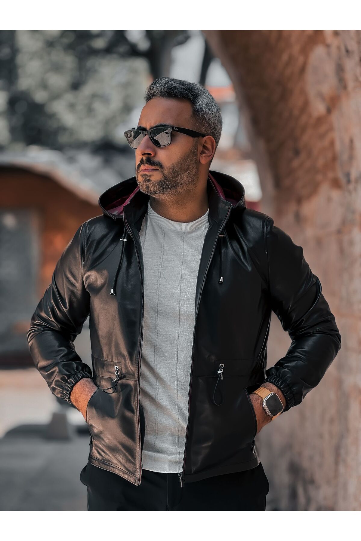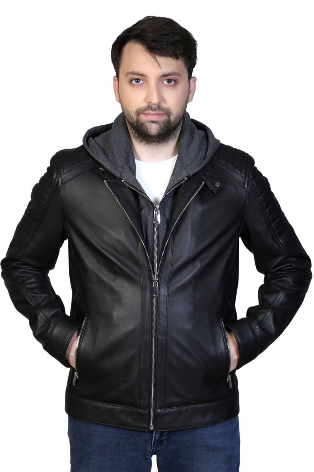 Hakiki Siyah Erkek Deri Ceketi Kapşonlu Hakiki Siyah Erkek Deri Ceketi Kapşonlu 627 4XL