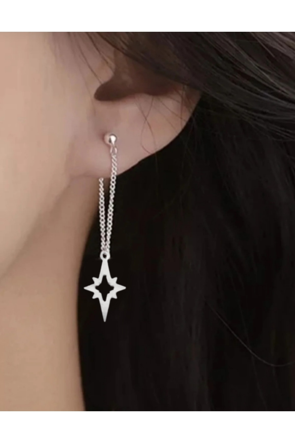 Deliksiz Yıldız Figürlü Zincirli Çelik Halka Küpe Deliksiz Yıldız Figürlü Zincirli Çelik Halka Küpe CZ8 تک سایز