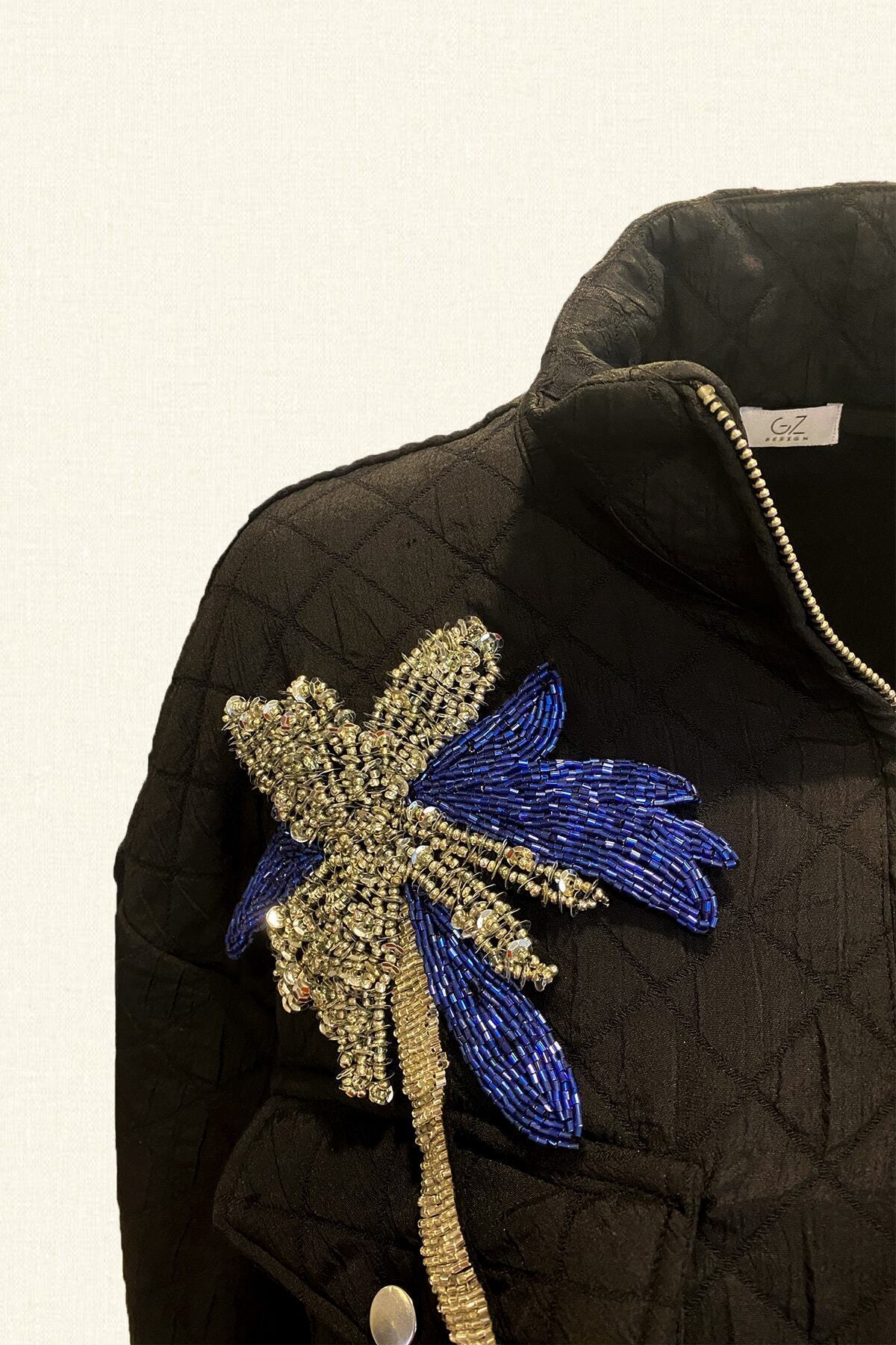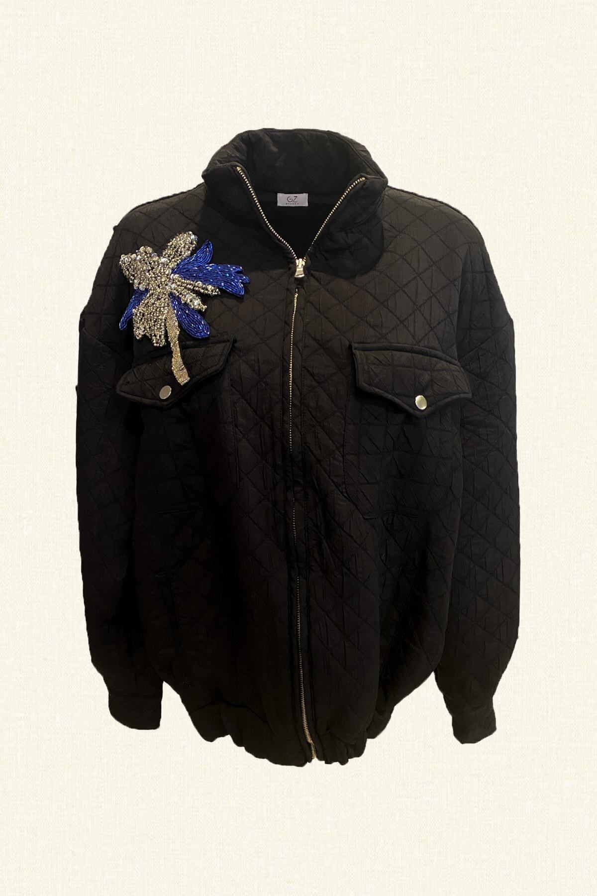 Palmiye Detaylı Siyah Bomber Ceket Palmiye Detaylı Siyah Bomber Ceket PDSBC XL