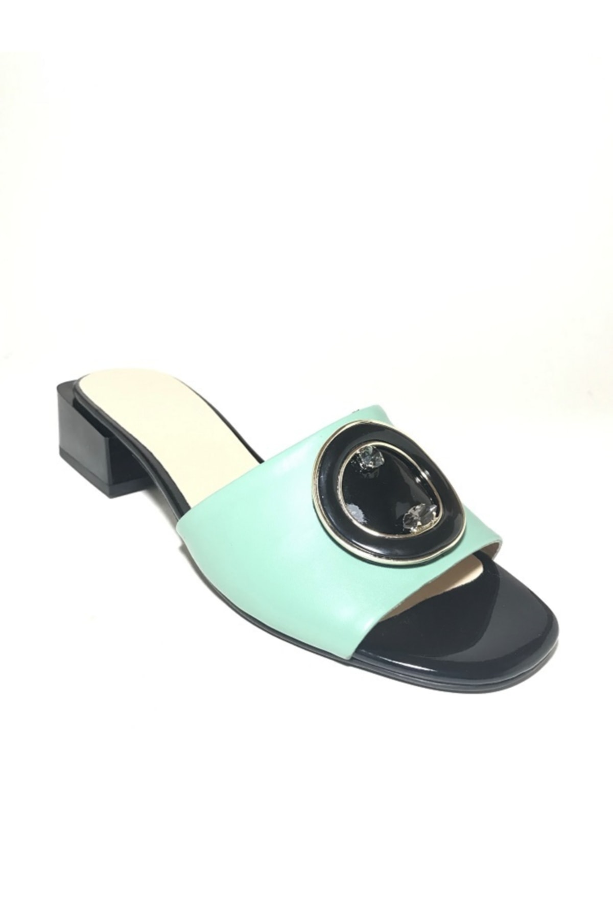 Kadın Yeşil Hakiki Derili Şık Yuvarlak Tokalı Terlik Kadın Yeşil Hakiki Derili Şık Yuvarlak Tokalı Terlik /1595 43