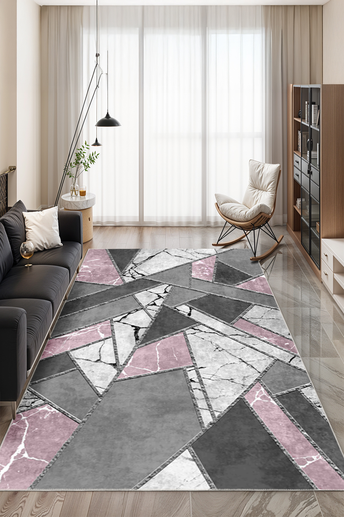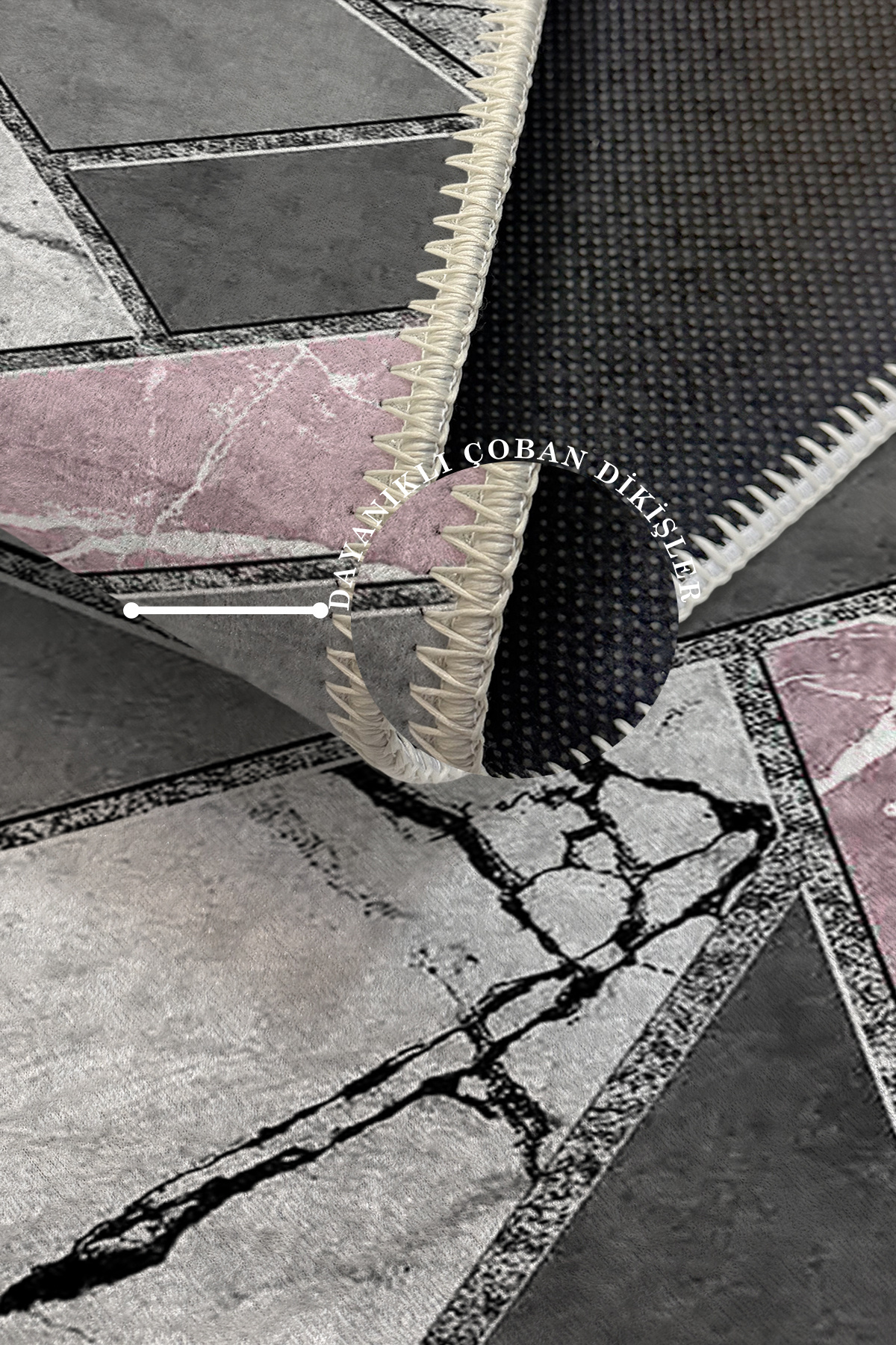 Dekoratif Kaymaz Taban,pembe Gri Geometrik Desen Gri Renk Özel Tasarım, Ince, Yıkanabilir Halı Dekoratif Kaymaz Taban,pembe Gri Geometrik Desen Gri Renk Özel Tasarım, Ince, Yıkanabilir Halı WOOKECE900 100 x 300