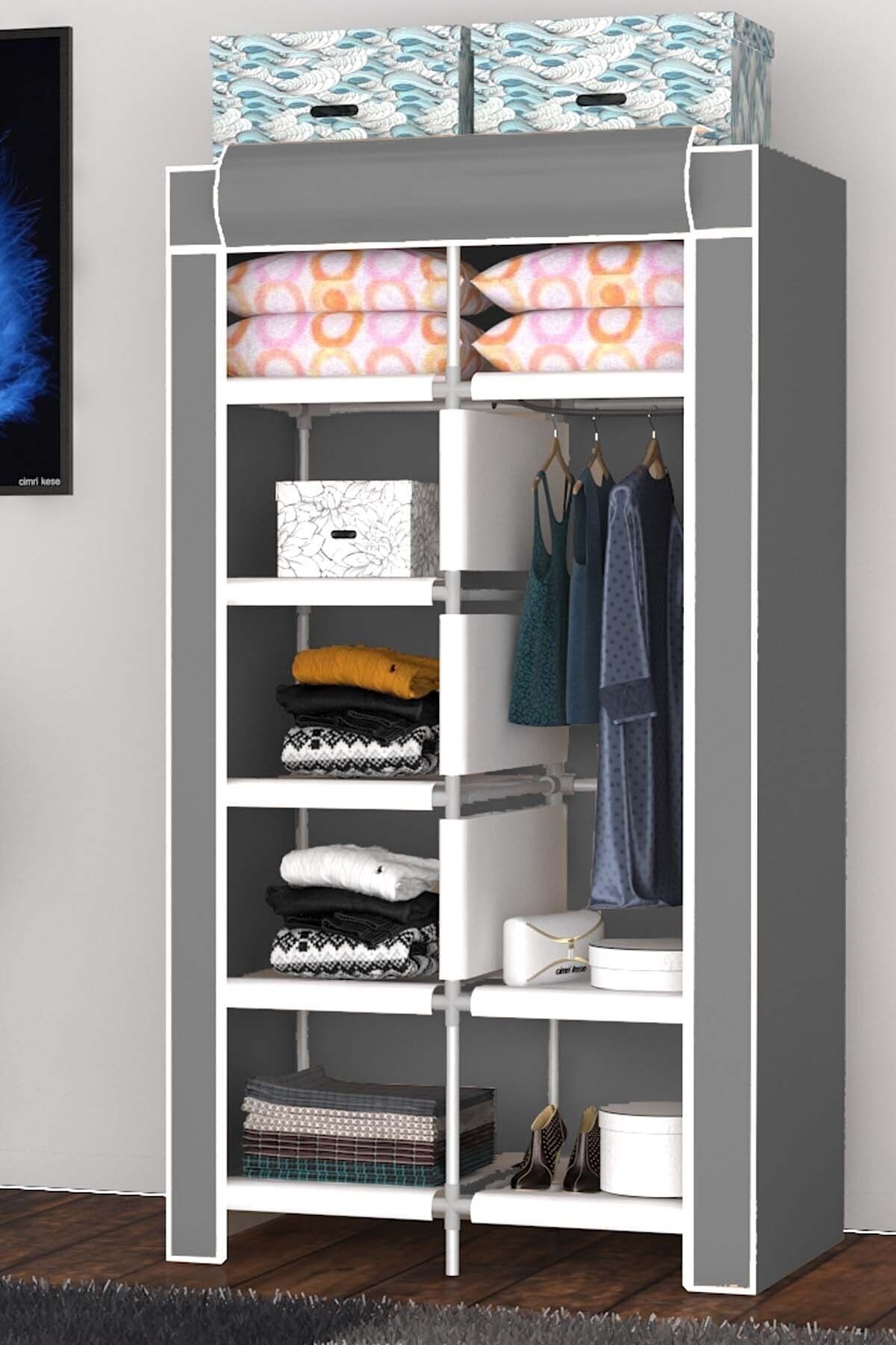 Çelik Borulu Gri Yorgan Hurcu Bez Dolap Yüklük Gardırop Çelik Borulu Gri Yorgan Hurcu Bez Dolap Yüklük Gardırop HURÇGRİ تک سایز
