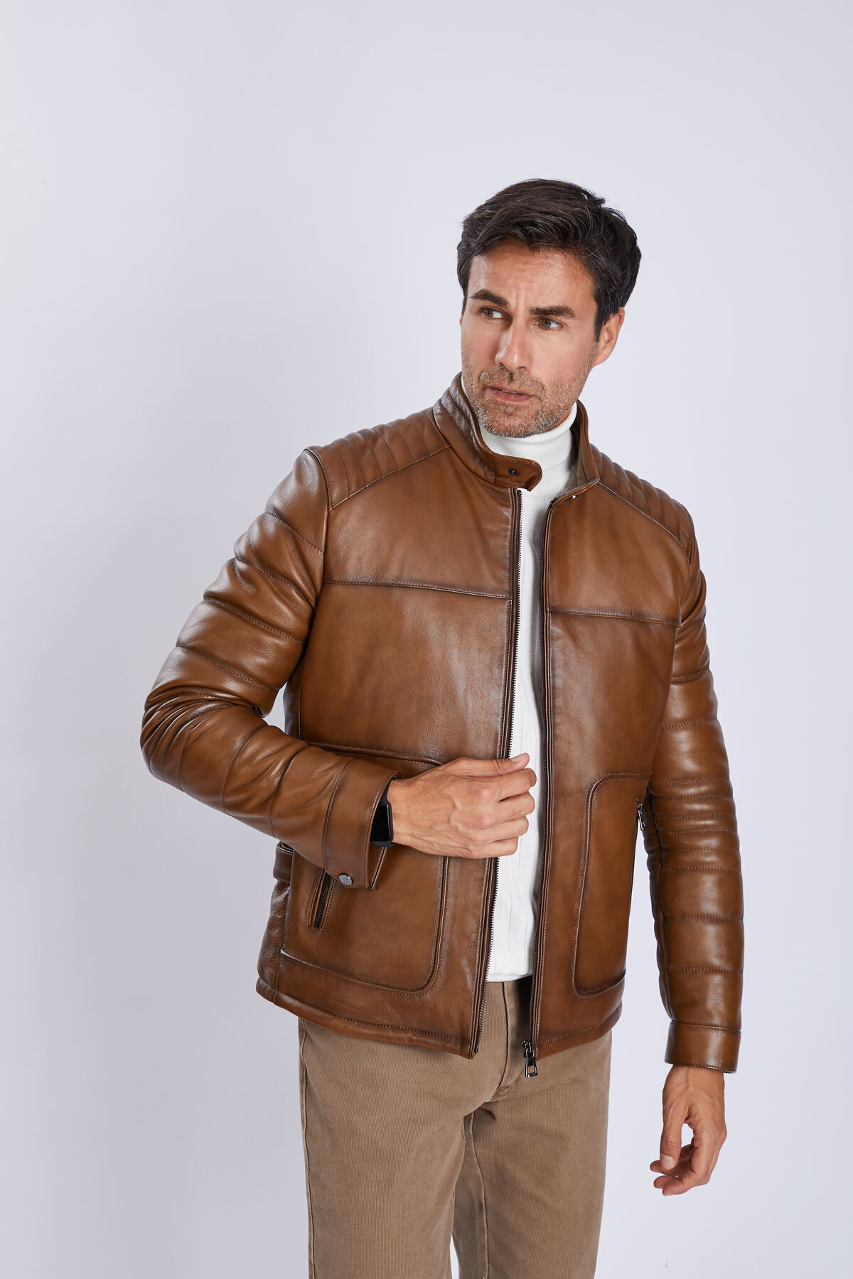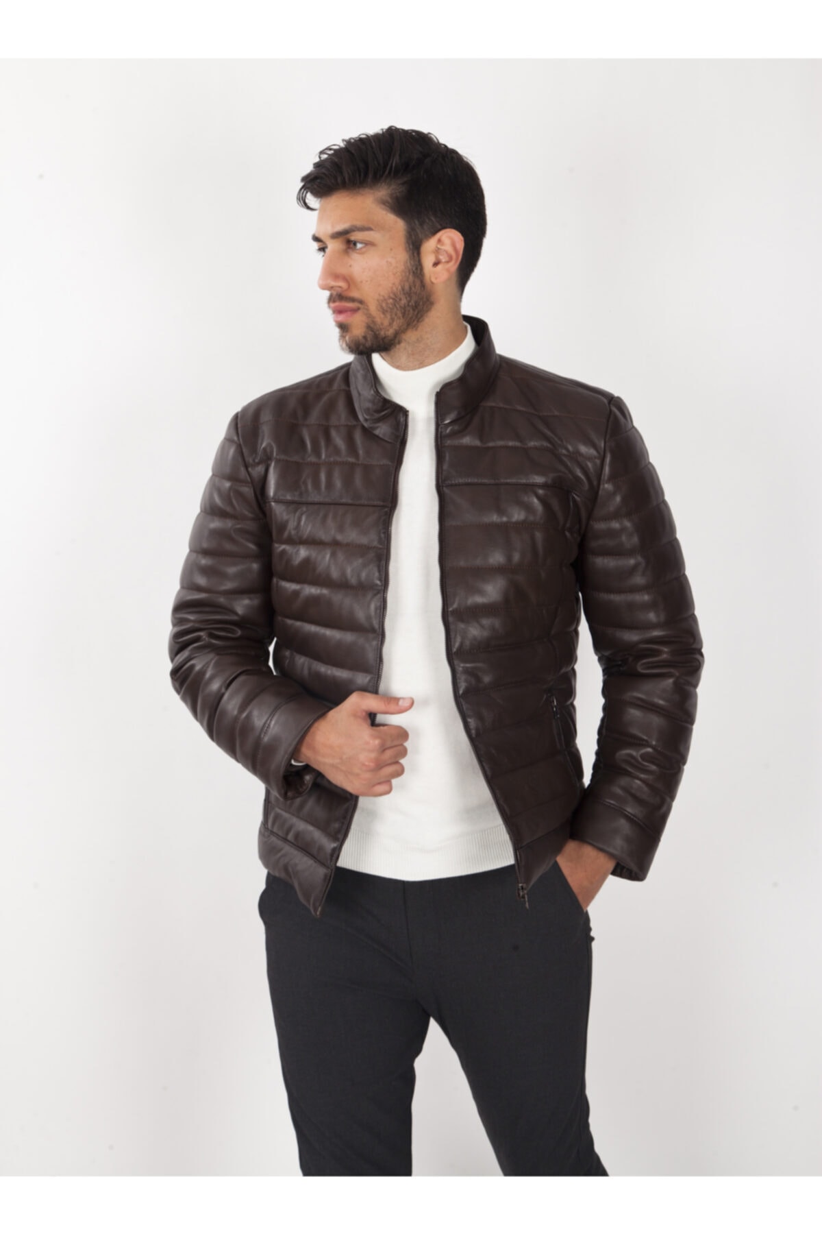 Erkek Taba Elyaf Dolgulu Hakiki Deri Mont Erkek Taba Elyaf Dolgulu Hakiki Deri Mont ALPS 4XL