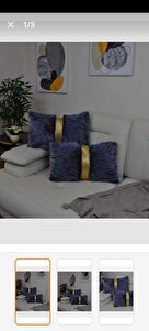 Pelüş Şeritli Kırlent Kılıfı Dikdörtgen - Lacivert Pelüş Şeritli Kırlent Kılıfı Dikdörtgen - Lacivert ŞD009 30 x 50