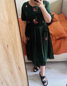 Kısa Kol Şile Bezi Asiye Midi Boy Yazlık Elbise Yeşil Ysl Kısa Kol Şile Bezi Asiye Midi Boy Yazlık Elbise Yeşil Ysl 221.19 XL