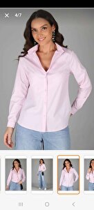 Kadın Pembe Likralı Uzun Kol Pamuklu Klasik Gömlek Kadın Pembe Likralı Uzun Kol Pamuklu Klasik Gömlek 60090-21k 4XL