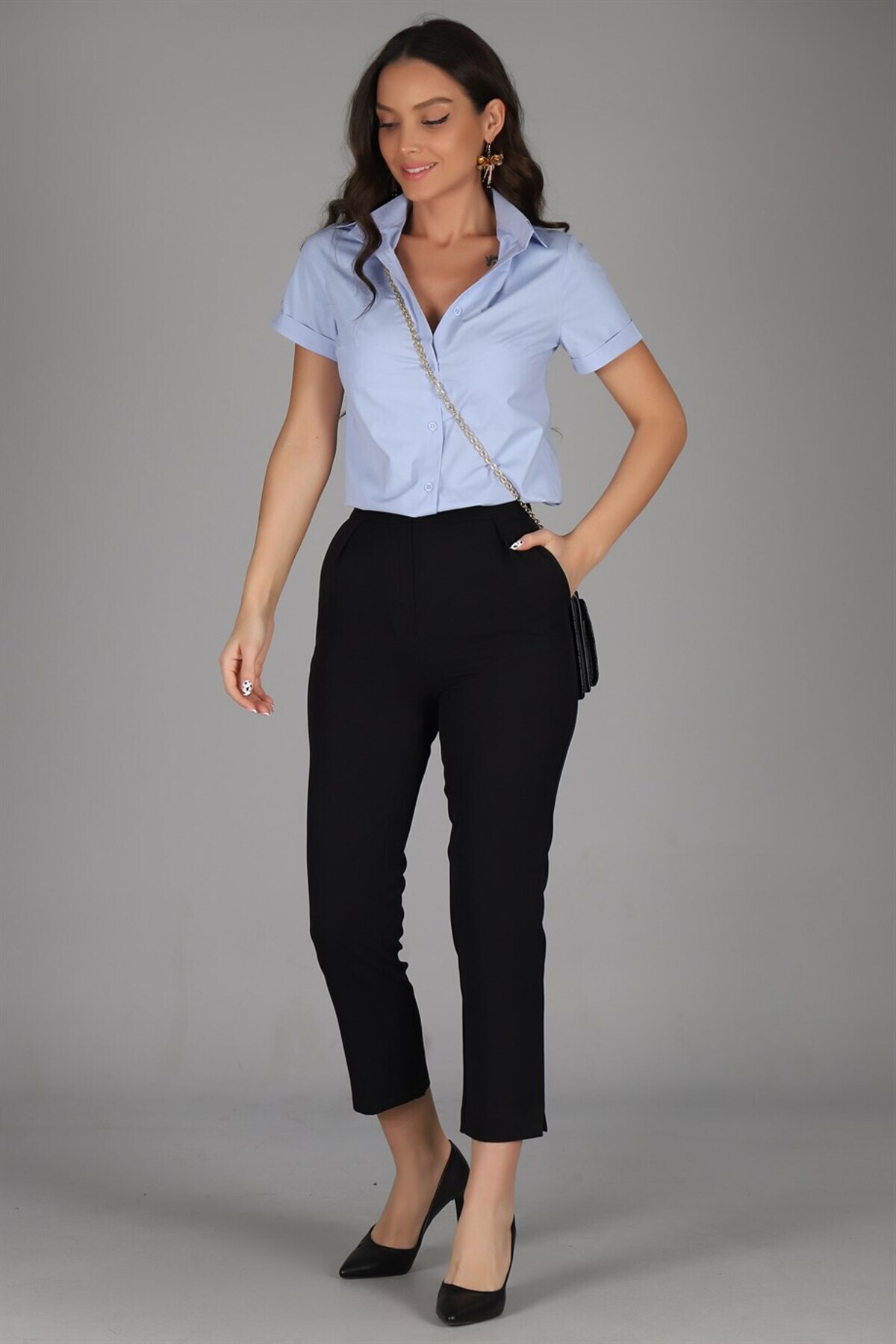 Kadın Mavi Kısa Kollu Pamuklu Likralı Gömlek Kadın Mavi Kısa Kollu Pamuklu Likralı Gömlek swe-60031-2y1 4XL