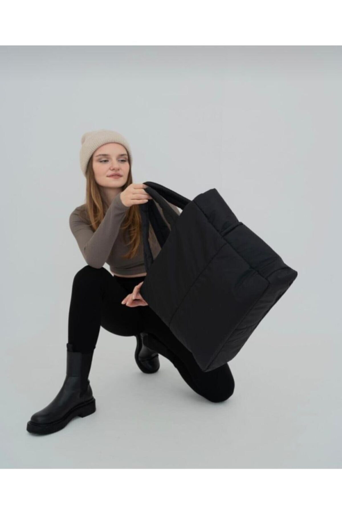 Siyah Kadın Kabartmalı Puf Kumaş Kol / Omuz Çanta Siyah Kadın Kabartmalı Puf Kumaş Kol / Omuz Çanta EB-COCOO Büyük Boy