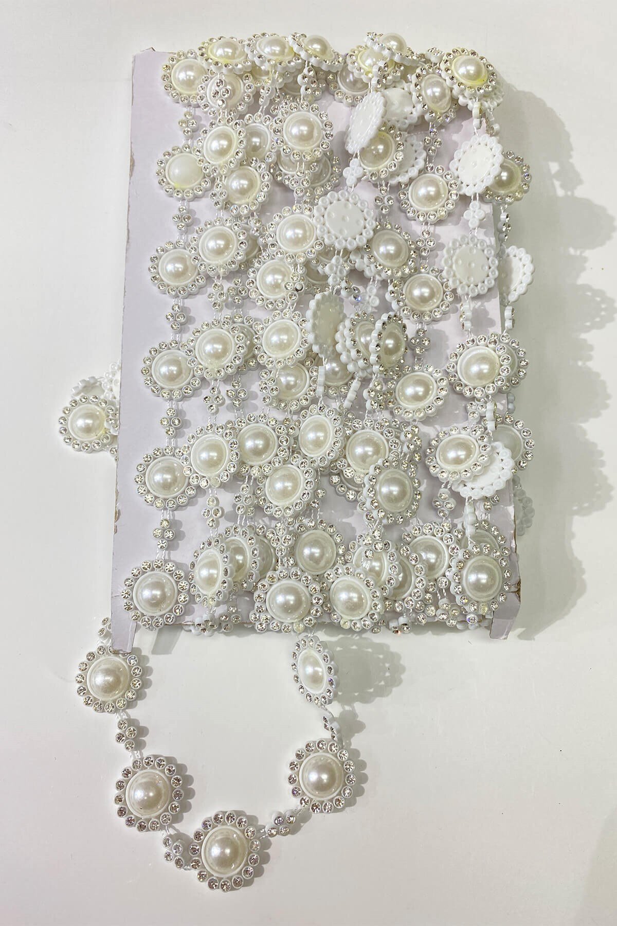 İnci Çiçek Desenli Taşlı Şerit Boncuk Krem – Boncuk İnci Çiçek Desenli Taşlı Şerit Boncuk Krem – Boncuk BONBON-124 تک سایز
