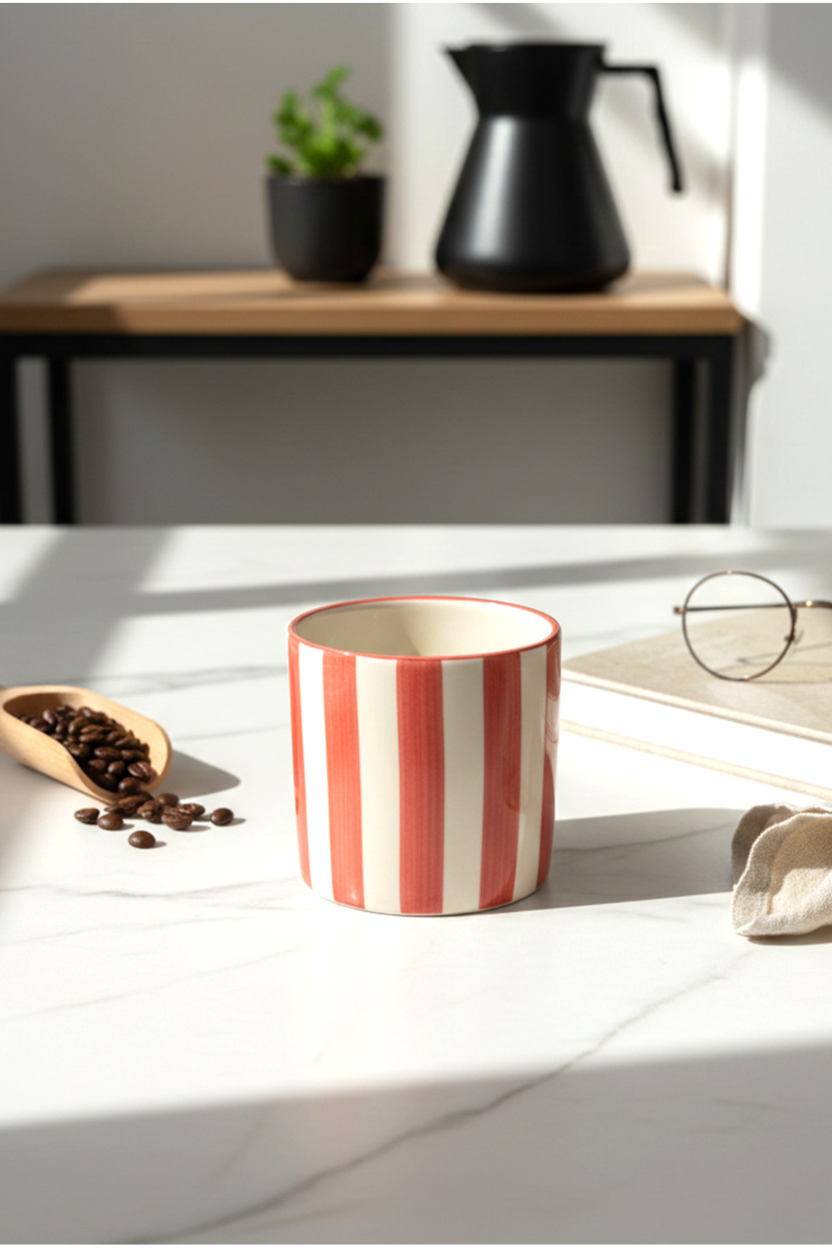 Pembe Beyaz Çizgili Double Fincan Espresso Double Türk Kahve Fincan Kahve Kupası Pembe Beyaz Çizgili Double Fincan Espresso Double Türk Kahve Fincan Kahve Kupası FIN203 تک سایز