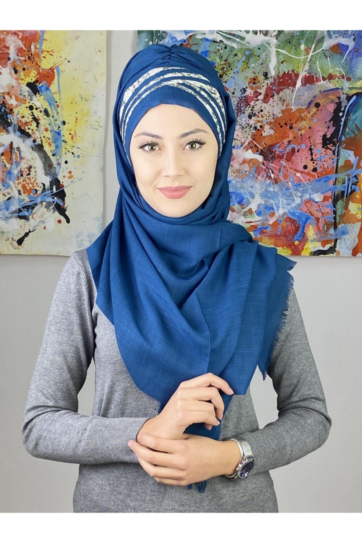 Koyu Mavi Siyah Taşlı Çiçek Desenli Hazır Şal Koyu Mavi Siyah Taşlı Çiçek Desenli Hazır Şal 01-ÇDHŞ-26OCK تک سایز