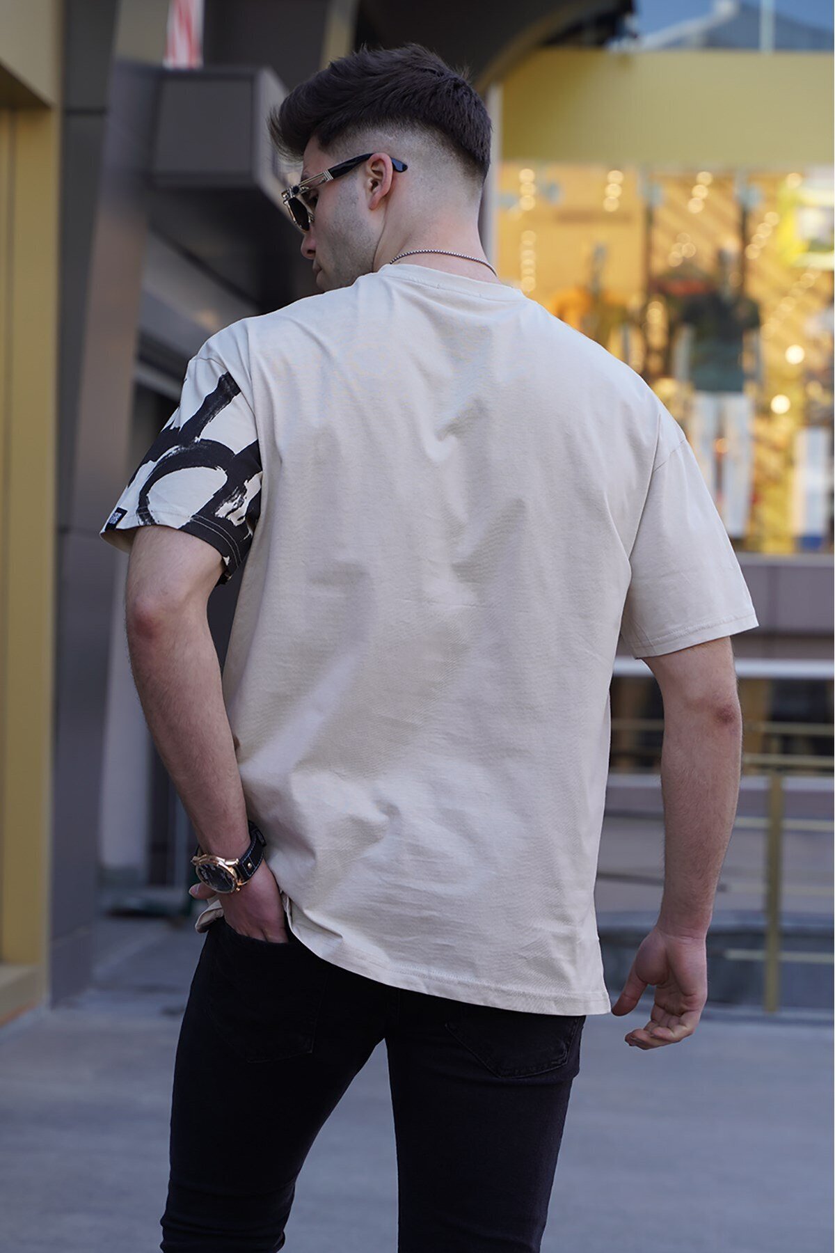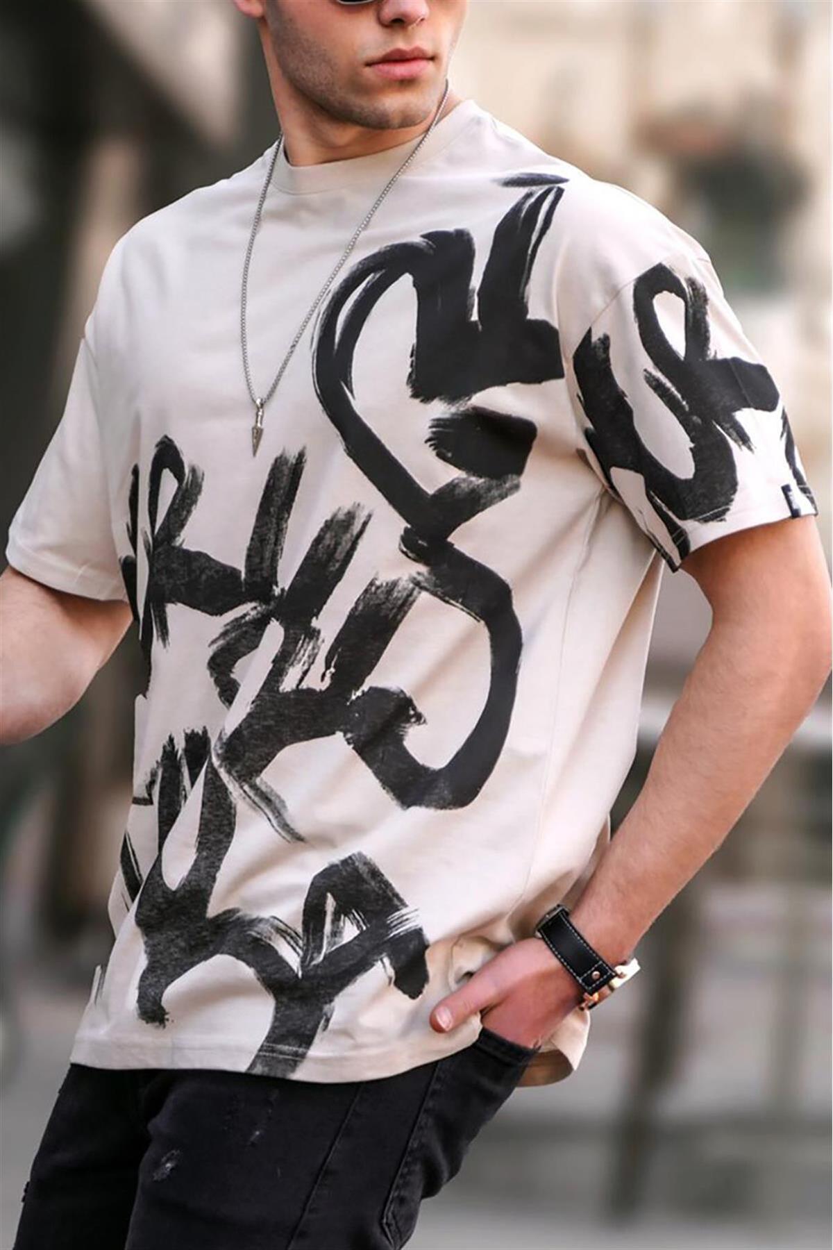 Erkek Bej Overfit Desenli Tişört 5811 Erkek Bej Overfit Desenli Tişört 5811 XL