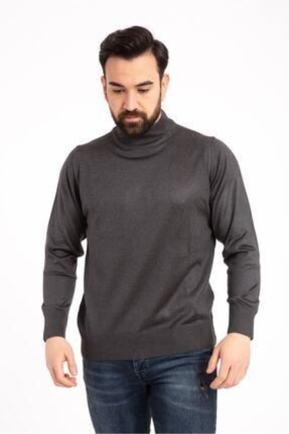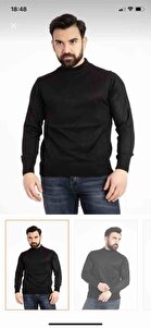 Erkek Siyah Ince Yün Triko Baba Yarım Balıkçı Boğazlı Kazak Erkek Siyah Ince Yün Triko Baba Yarım Balıkçı Boğazlı Kazak BYYBK 3XL
