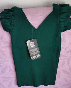 Kadın Zümrüt Yeşili Ön Arka V Omuzu Fırfırlı Triko Bluz BLZ-19001097 Kadın Zümrüt Yeşili Ön Arka V Omuzu Fırfırlı Triko Bluz BLZ-19001097 S/M
