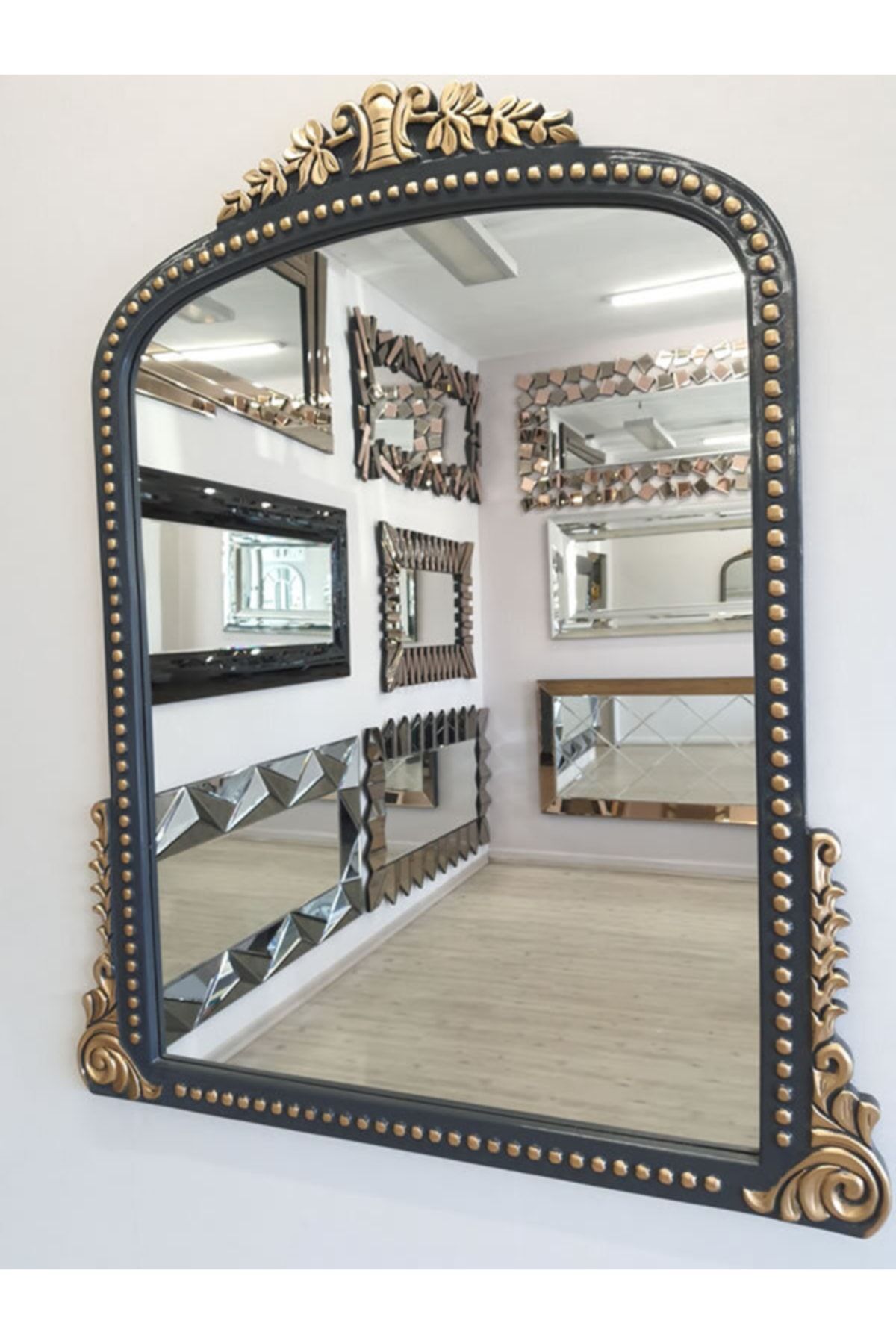 Lady Model Siyah Altın Renk Dekoratif Ayna Lady Model Siyah Altın Renk Dekoratif Ayna HPS-7669 تک سایز