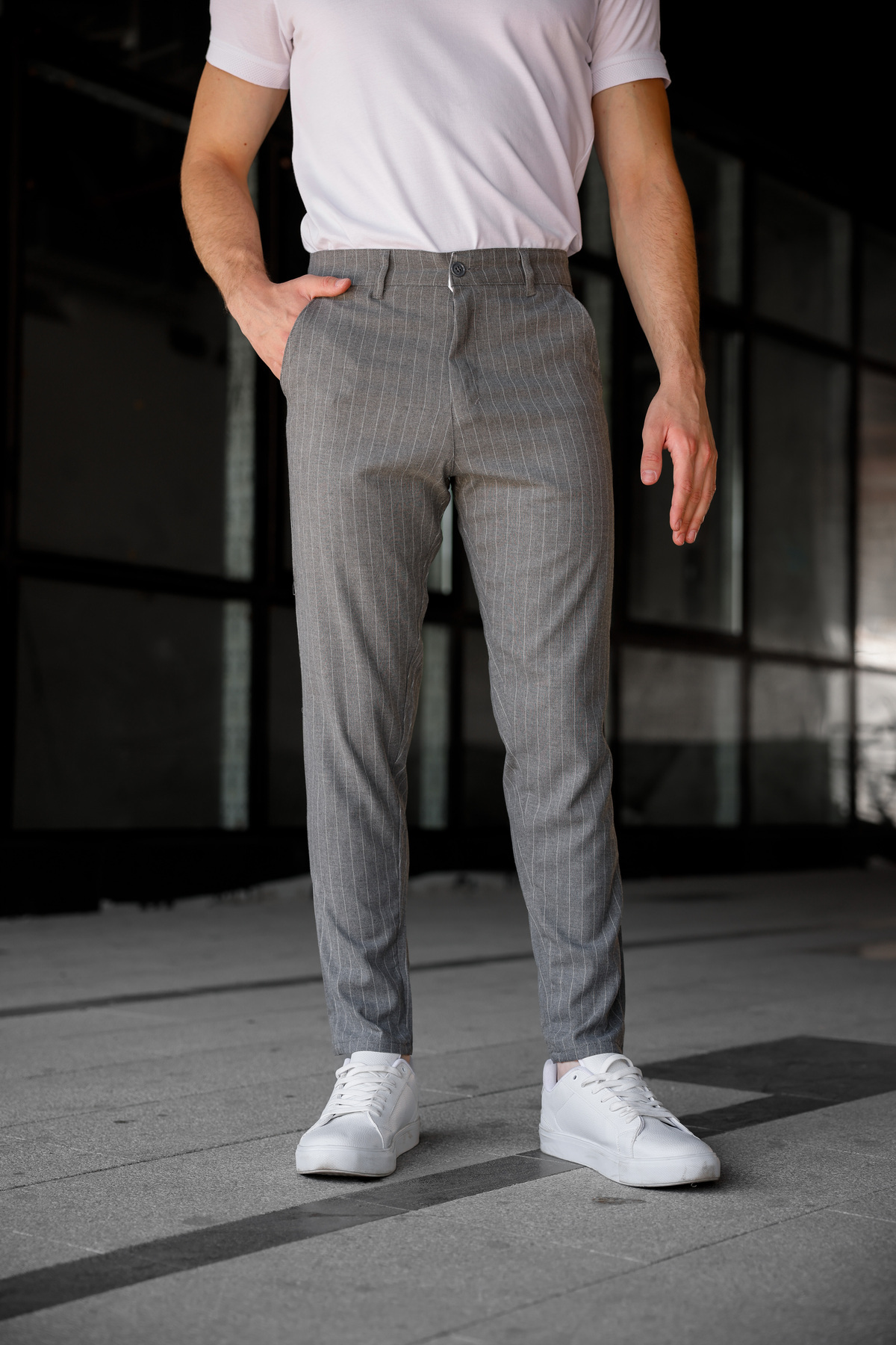 Erkek Füme Slim Fit Çizgili Kumaş Pantolon Erkek Füme Slim Fit Çizgili Kumaş Pantolon SJ-173 38