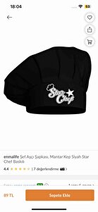 Şef Aşçı Şapkası, Mantar Kep Siyah Star Chef Baskılı Şef Aşçı Şapkası, Mantar Kep Siyah Star Chef Baskılı ecstarsiyah تک سایز