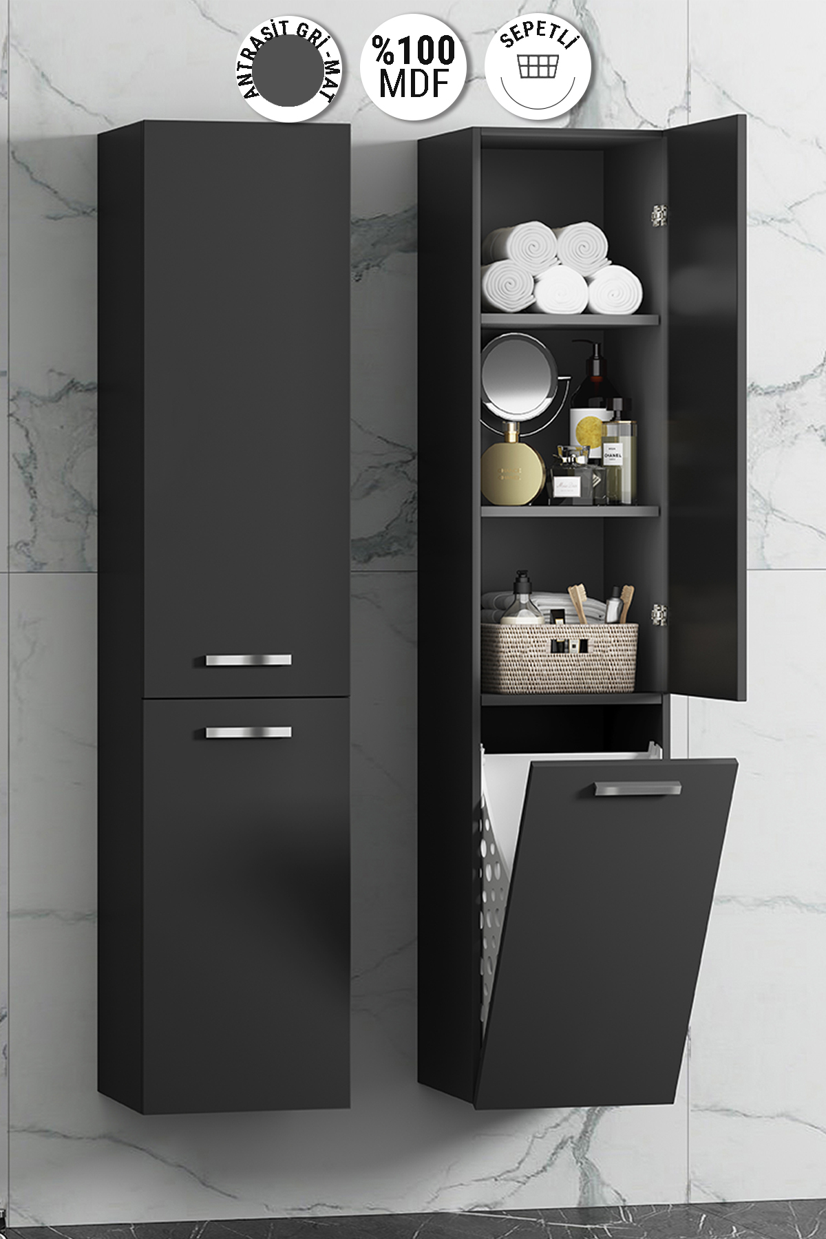 Yeni Boy 35*167 cm Antrasit Gri Mat MDF Sepetli Asma Banyo Boy Dolabı Yeni Boy 35*167 cm Antrasit Gri Mat MDF Sepetli Asma Banyo Boy Dolabı YENİBOYSPTLİMATGRİ تک سایز
