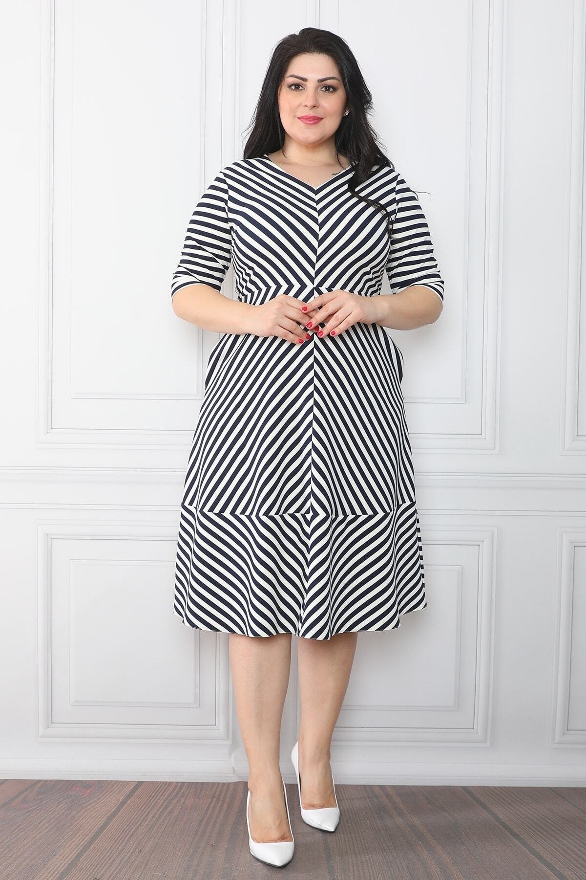 Kadın Büyük Beden Siyah Renk Kombinli Elbise 65n32007 Kadın Büyük Beden Siyah Renk Kombinli Elbise 65n32007 65N32007 48-50