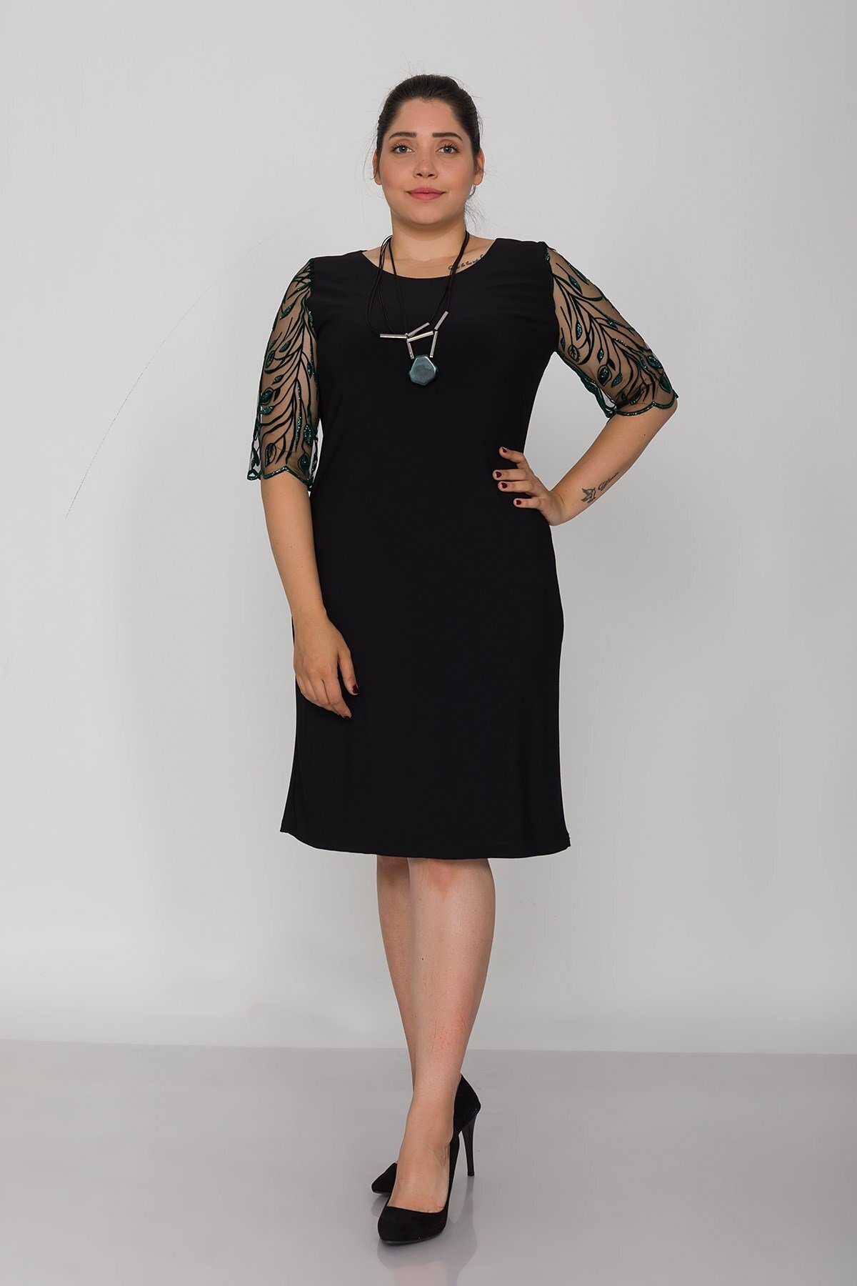 Kadın Büyük Beden Fujya Sırtı V Kapri Kollu Elbise 65n31822 Kadın Büyük Beden Fujya Sırtı V Kapri Kollu Elbise 65n31822 65N31822 44