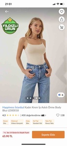 Kadın Krem İp Askılı Örme Body Bluz LD00018 Kadın Krem İp Askılı Örme Body Bluz LD00018 40