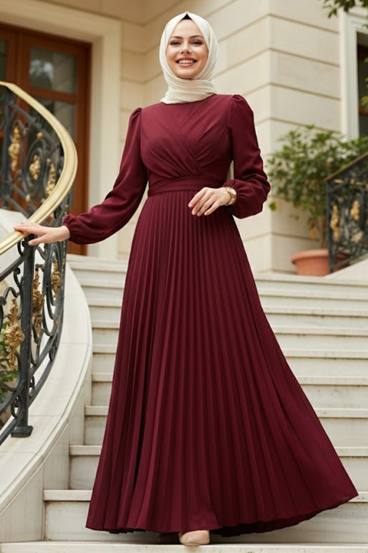 Saten Kahverengi Tesettür Abiye Elbise 3452KH Saten Kahverengi Tesettür Abiye Elbise 3452KH OZD-3452 56
