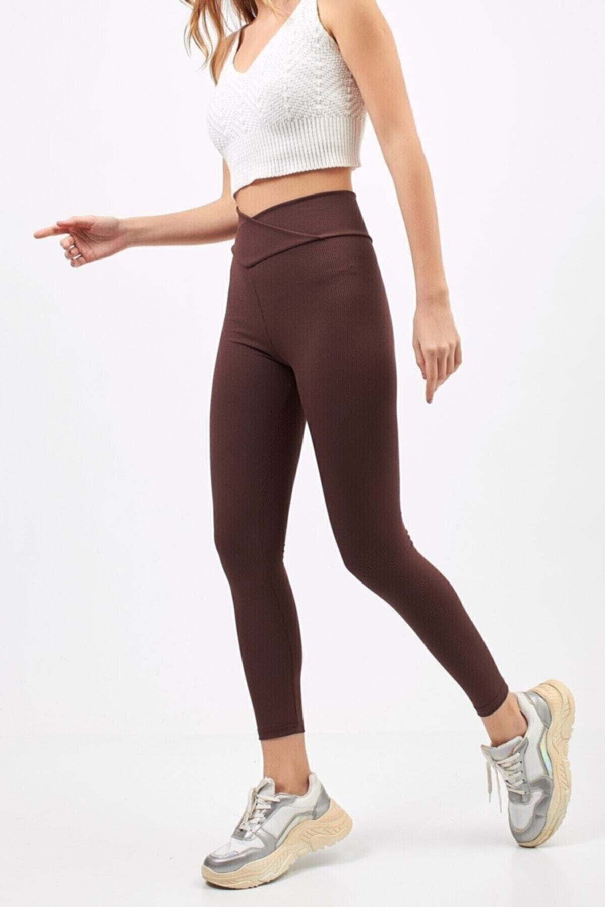 Kahverengi Yüksek Bel Kaşkorse Yan Dikişsiz Fitilli Spor Tayt Kahverengi Yüksek Bel Kaşkorse Yan Dikişsiz Fitilli Spor Tayt FVTYT0088 4XL