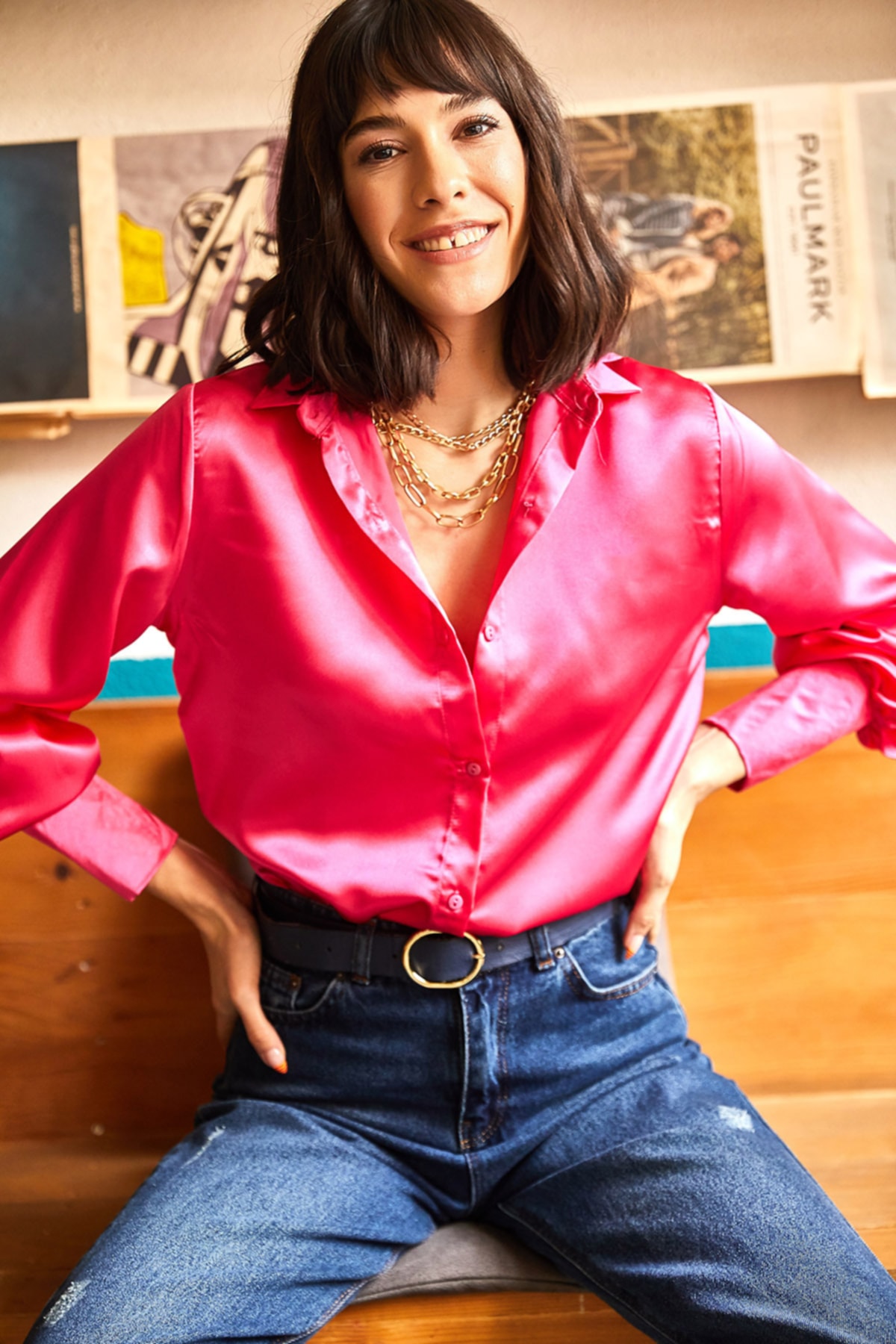 Kadın Gold Manşet Detaylı Dokuma Saten Gömlek GML-19000984 Kadın Gold Manşet Detaylı Dokuma Saten Gömlek GML-19000984 L