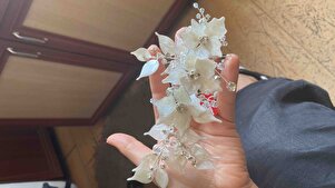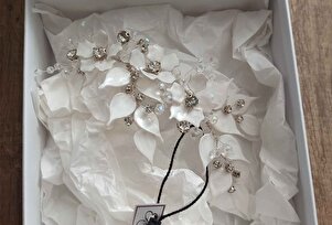 Yaprak Detaylı Çiçekli Taşlı Saç Aksesuarı Taşlı Beyaz Gelin Tacı Yaprak Detaylı Çiçekli Taşlı Saç Aksesuarı Taşlı Beyaz Gelin Tacı T372 تک سایز