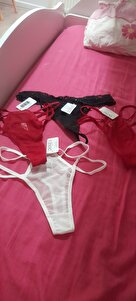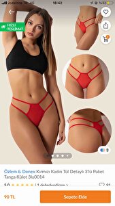Kırmızı Kadın Tül Detaylı 3'lü Paket Tanga Külot 3lu0014 Kırmızı Kadın Tül Detaylı 3'lü Paket Tanga Külot 3lu0014 3LU0014 XL