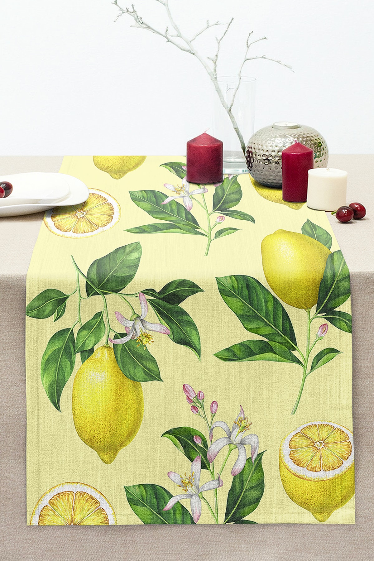 Beyaz Zemin Limon Desen Dijital Baskılı Runner Beyaz Zemin Limon Desen Dijital Baskılı Runner RN20 تک سایز