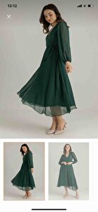 Yeşil Balon Kol Kruvaze Midi Boy Şifon Elbise Yeşil Balon Kol Kruvaze Midi Boy Şifon Elbise ZKS-0048 5XL