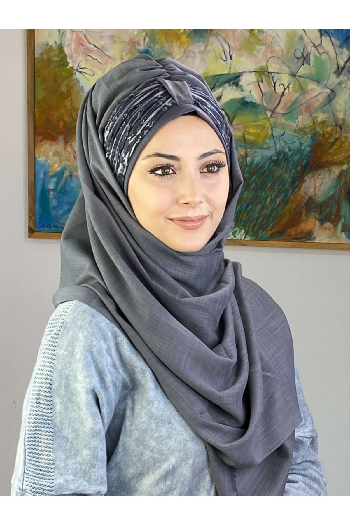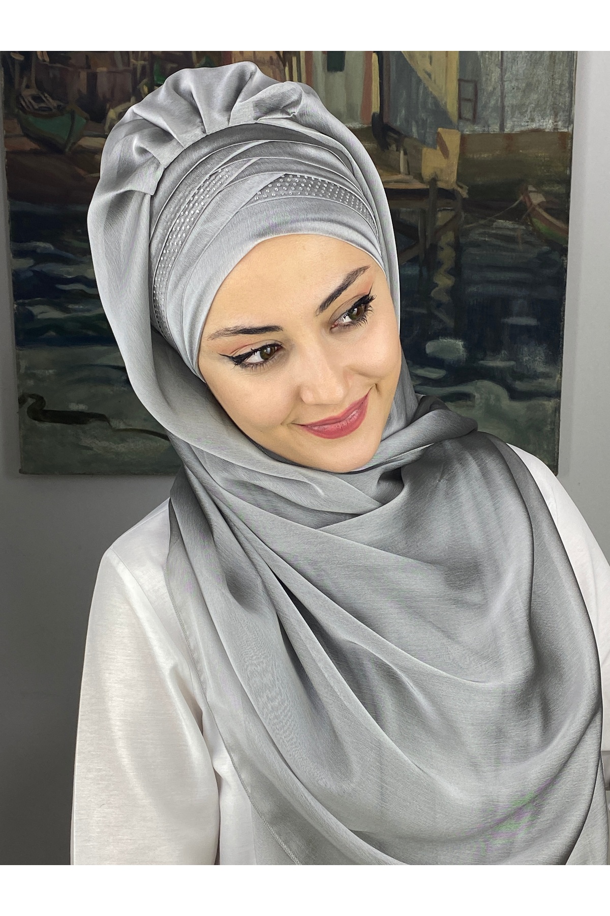 Koyu Gri Asimetrik Krem Drapeli Hazır Şal Koyu Gri Asimetrik Krem Drapeli Hazır Şal 23KASHŞ19 تک سایز