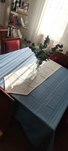Keten Çizgili Masa Örtüsü Indigo Mavi Keten Çizgili Masa Örtüsü Indigo Mavi GH-ketentek 160 x 220