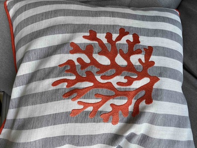 Nakışlı Yıldız Kılıfı Biyeli Mercan ( Gri X Ekru Çizgili / Kırmızı Nakış / 45x45 Cm) Nakışlı Yıldız Kılıfı Biyeli Mercan ( Gri X Ekru Çizgili / Kırmızı Nakış / 45x45 Cm) MARİN-SERİ-2 45 x 45