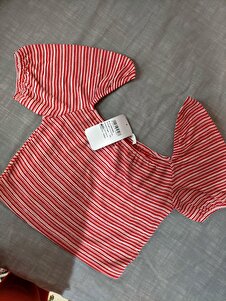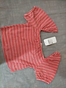 Kadın Kırmızı Çizgili Önü Büzgülü Crop Örme Bluz BLZ-19001836 Kadın Kırmızı Çizgili Önü Büzgülü Crop Örme Bluz BLZ-19001836 M