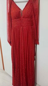 Kırmızı Rengi Beli Düğmeli Simli Tül Abiye Kırmızı Rengi Beli Düğmeli Simli Tül Abiye TRİO-1639 46