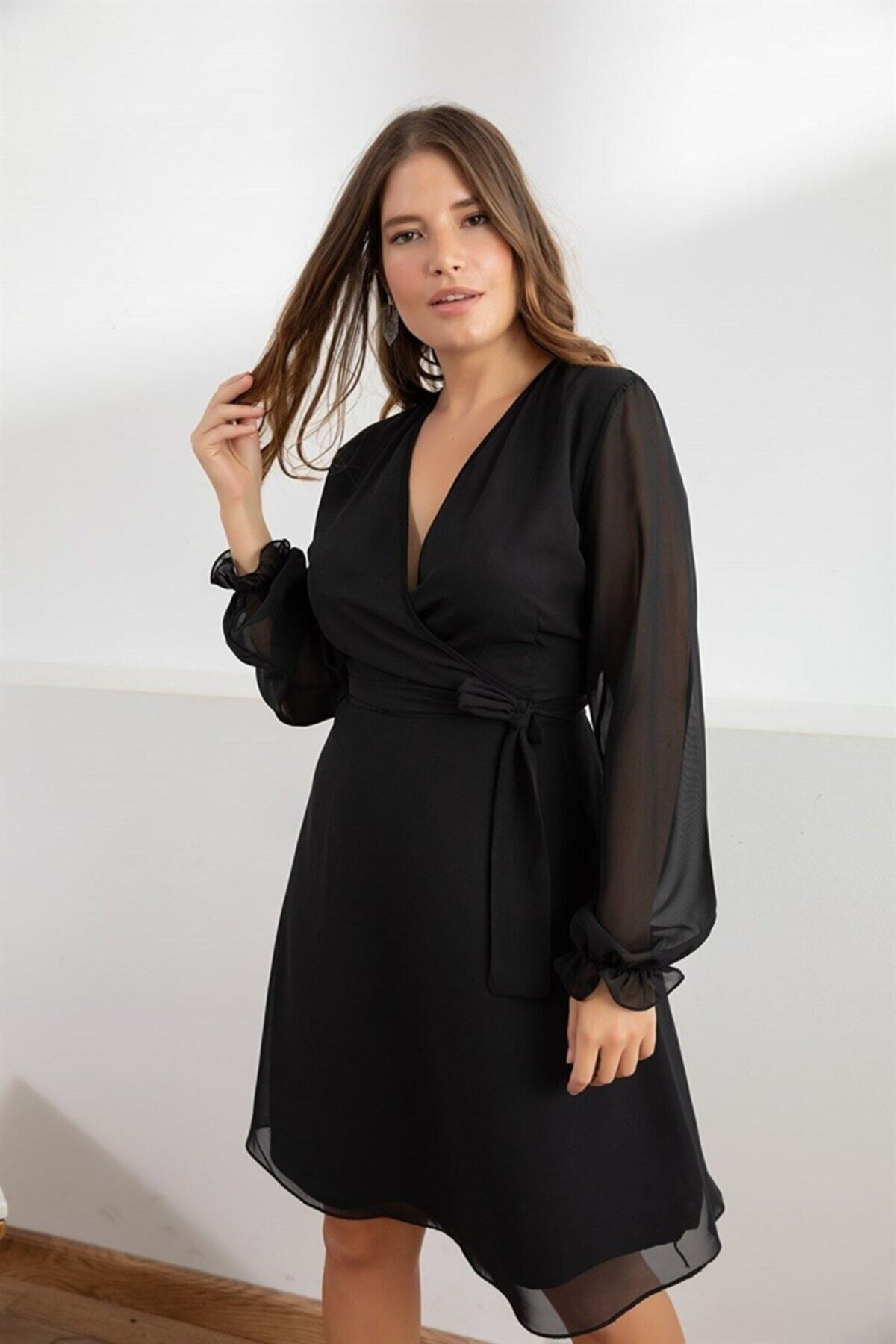 Siyah Astarlı Büyük Beden Kısa Şifon Elbise 105 Cm Siyah Astarlı Büyük Beden Kısa Şifon Elbise 105 Cm ELBISEDELISI-1146 5XL