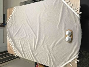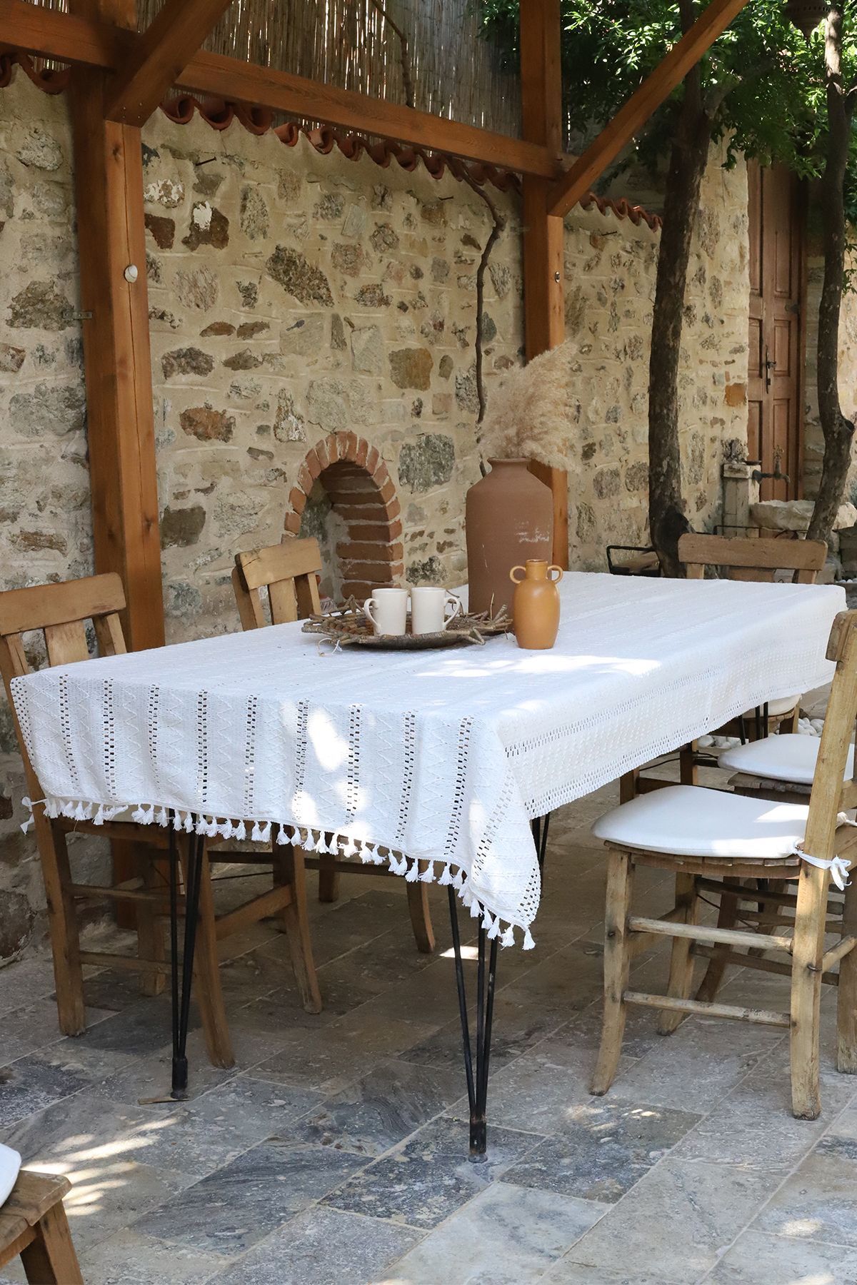 Bej Renkli Pamuk Ponponlu Masa Örtüsü Bej Renkli Pamuk Ponponlu Masa Örtüsü MS1 180 x 220