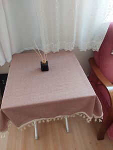 Mürdüm Renkli Pamuk Ponponlu Masa Örtüsü Mürdüm Renkli Pamuk Ponponlu Masa Örtüsü MS1 180 x 220